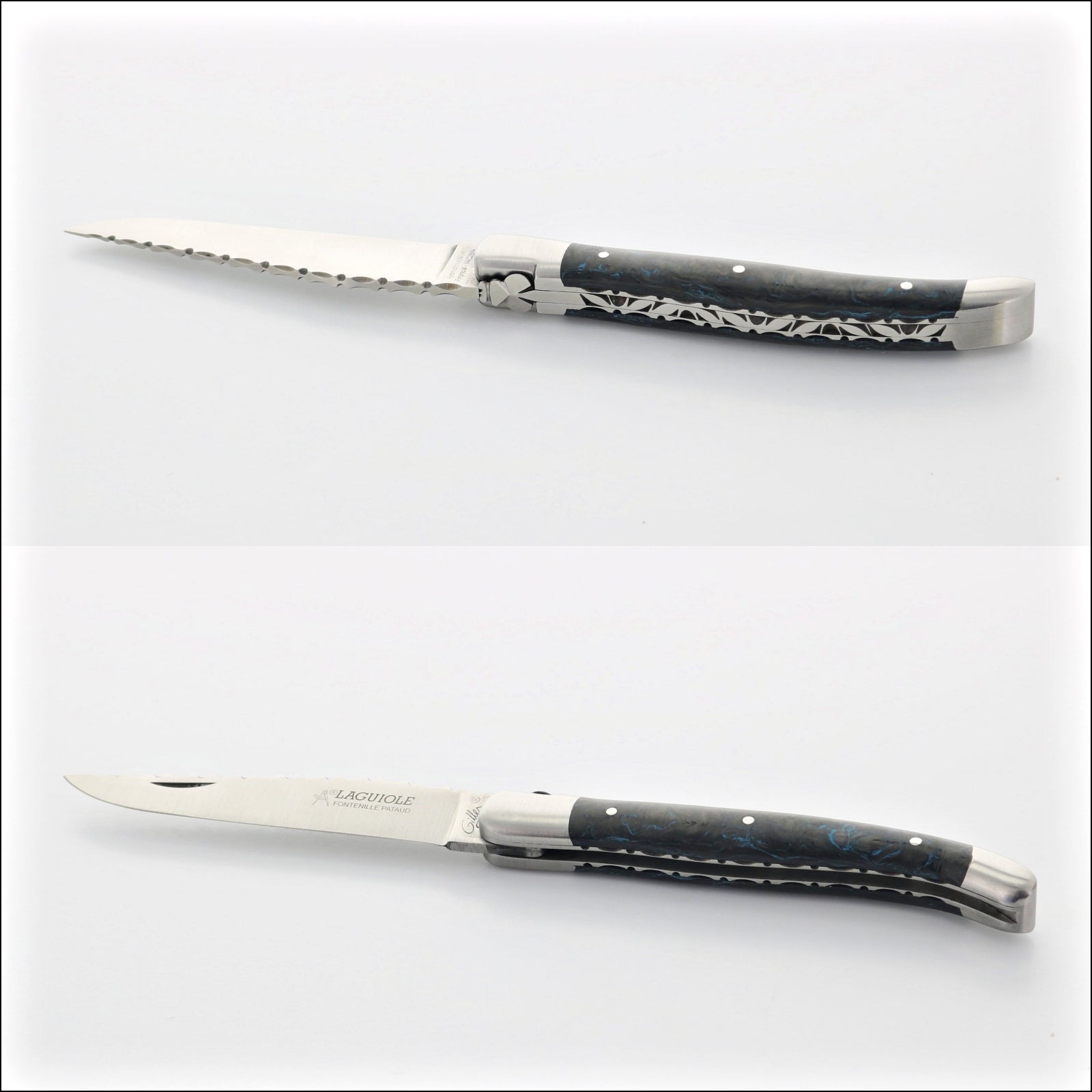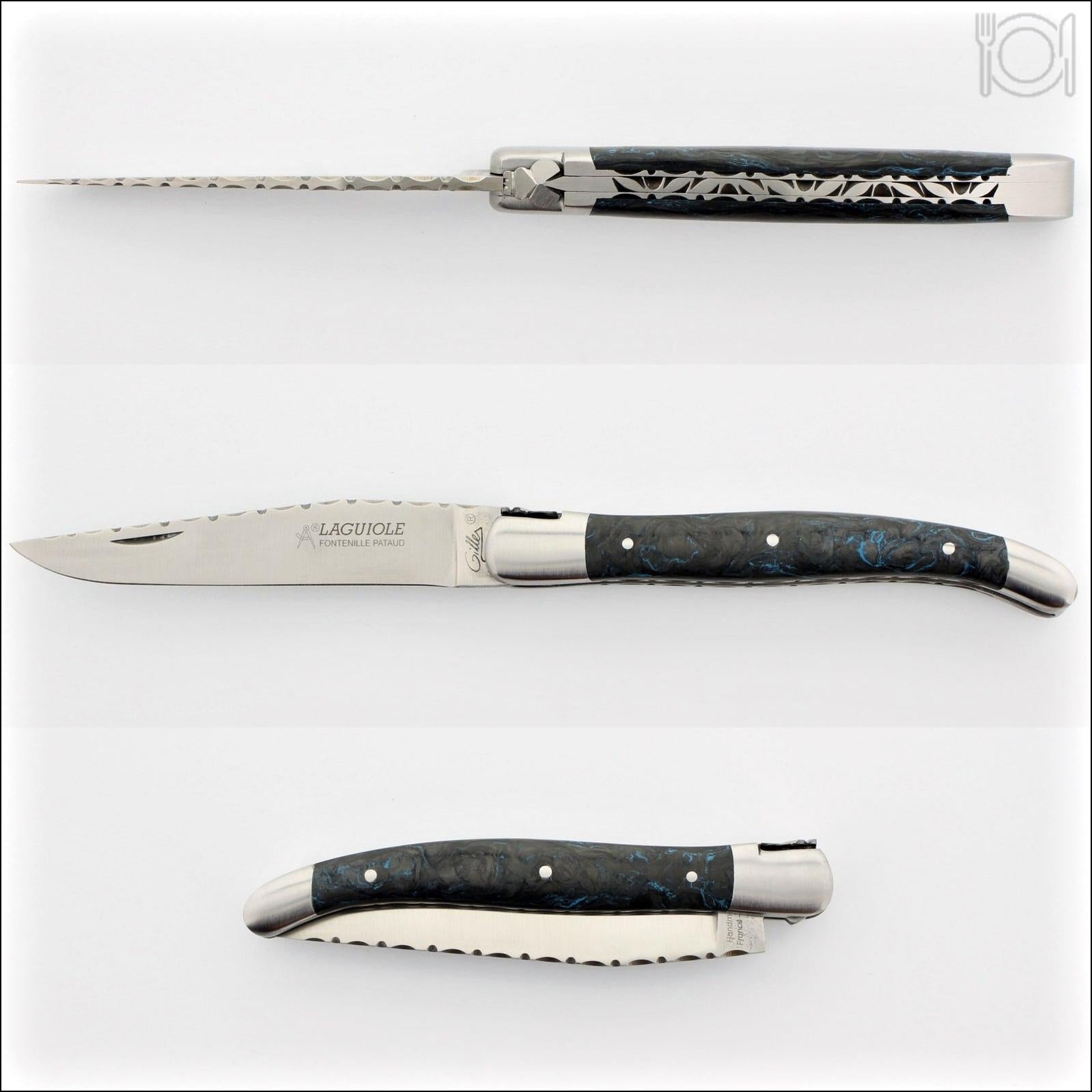 Laguiole Traditional Knife 12 cm Guilloche Blue Dark Matter