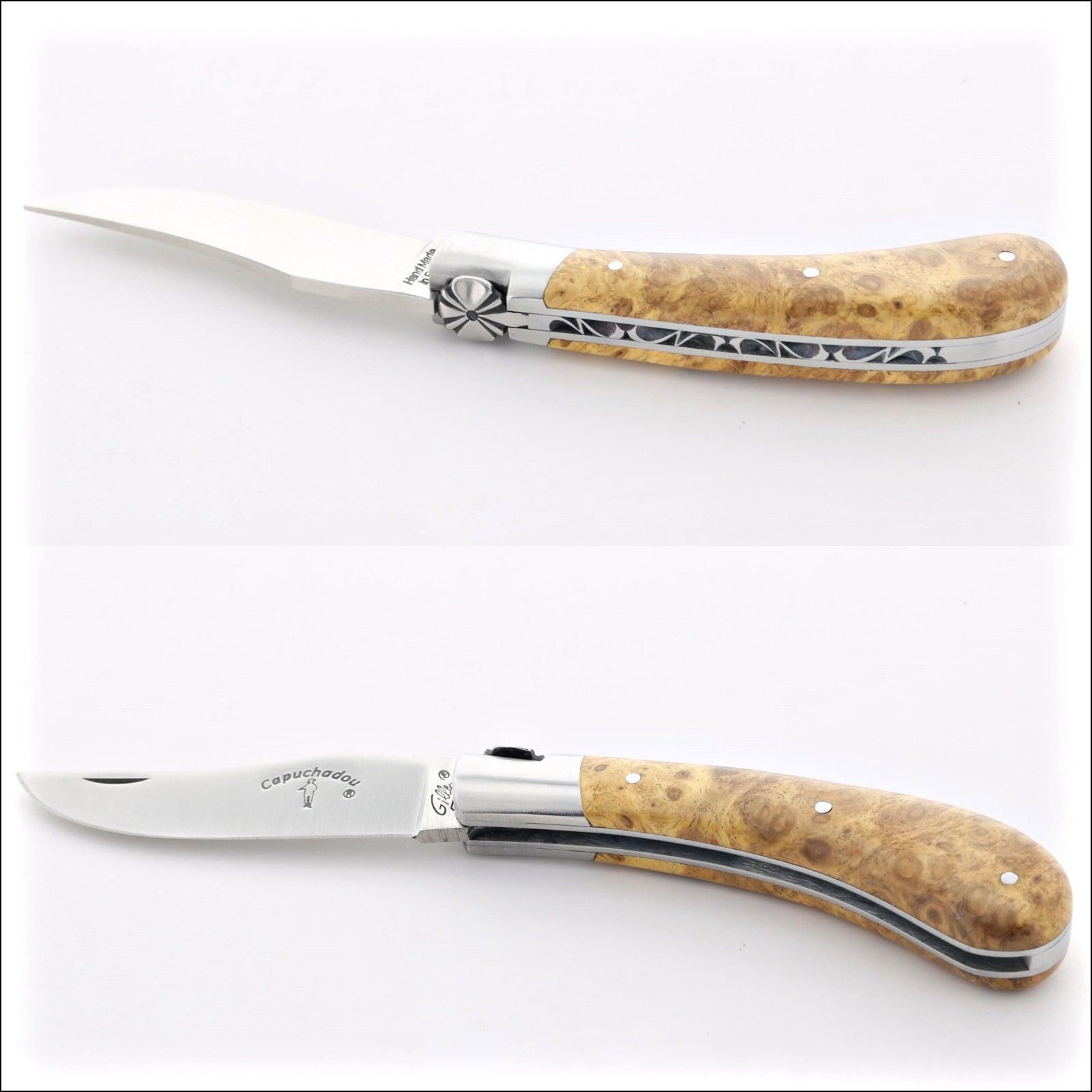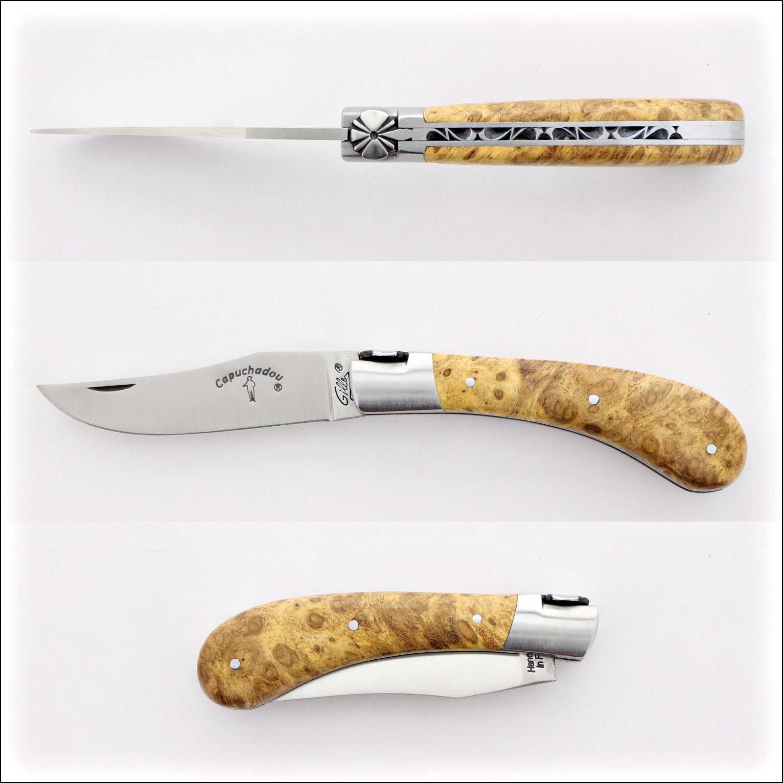 Before the development of the Laguiole in the 19th century, French shepherds carried a knife called the "Capuchadou" (or "capujadou"). This knife was used for all daily tasks, from preparing lunch to caring for their flocks of sheep. The four-leaf clover was added to provide good luck.