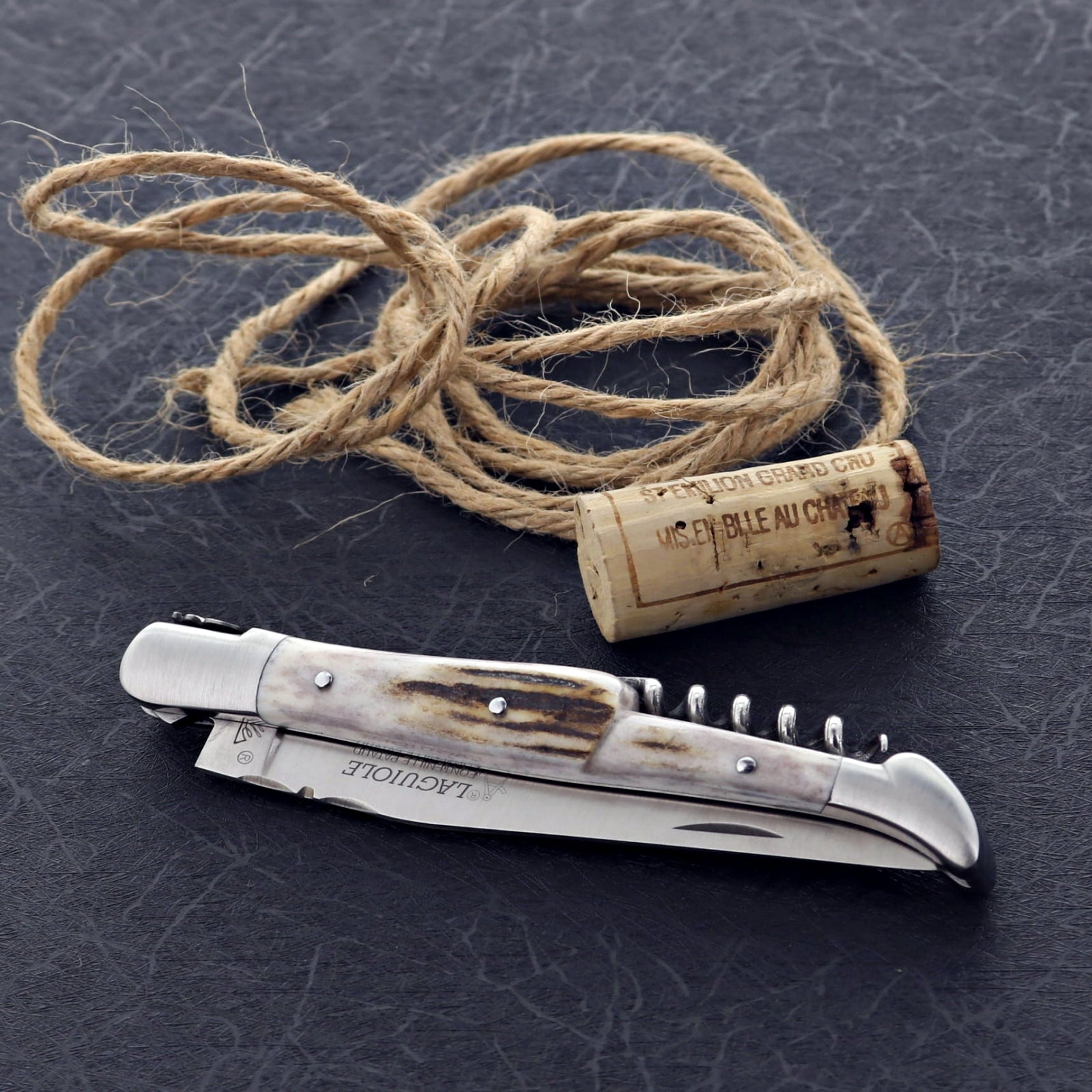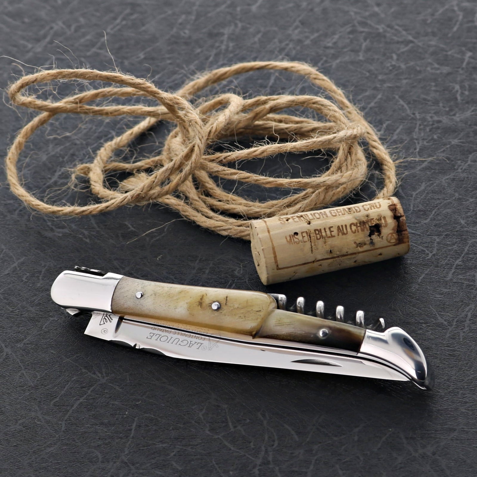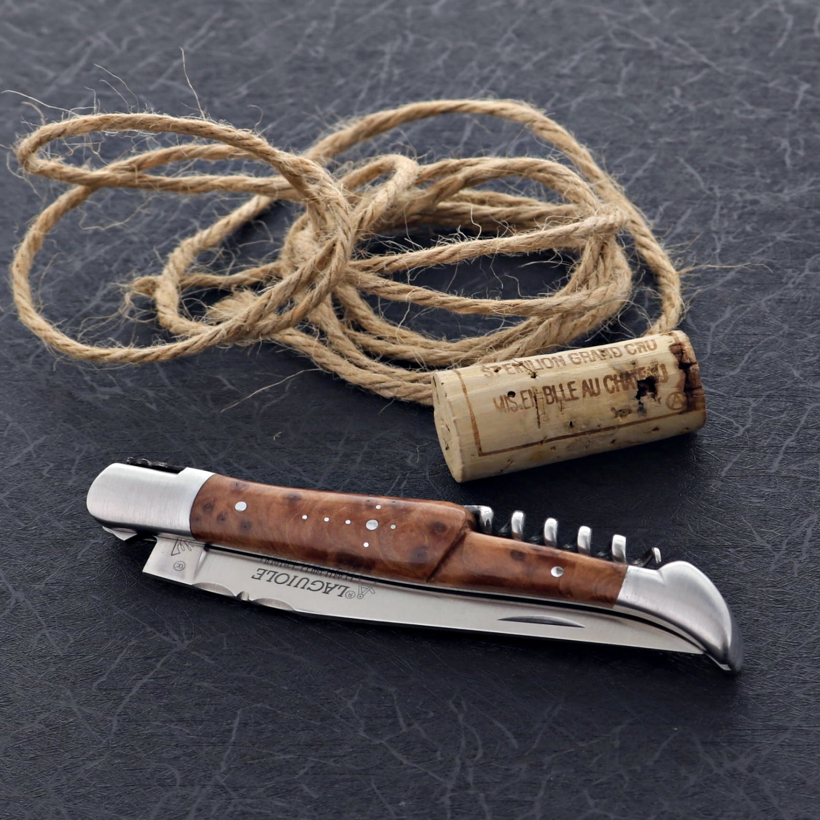 Laguiole Corkscrew knives, also known as "Laguiole 2 piece", were introduced in the 1880s when corked wine bottles became popular in urban society. This addition was a response to the request of the Aveyron people who had migrated to work in the cafes of Paris. The cafe owners and waiters, proud of their traditions, were keen on using their 2-piece knife in the capital. Each picnic knife is equipped with a sturdy blade stop, ensuring the protection of the blade edge when closing the knife.