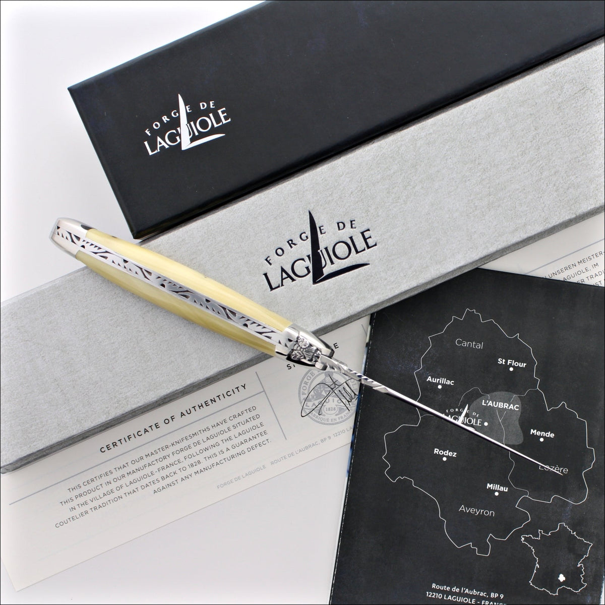 Handmade in the village of Laguiole, France, Forge de Laguiole knives are truly and by far of the highest quality offered in the market today. Additionally, each masterpiece is entirely handmade by the same craftsman to ensure pride in the completed piece.