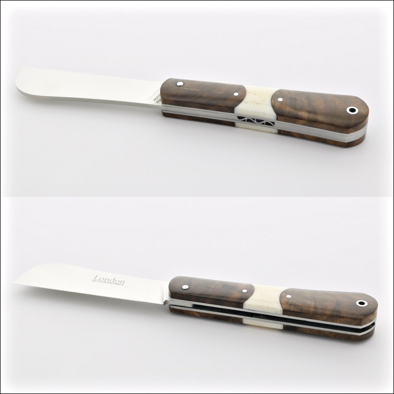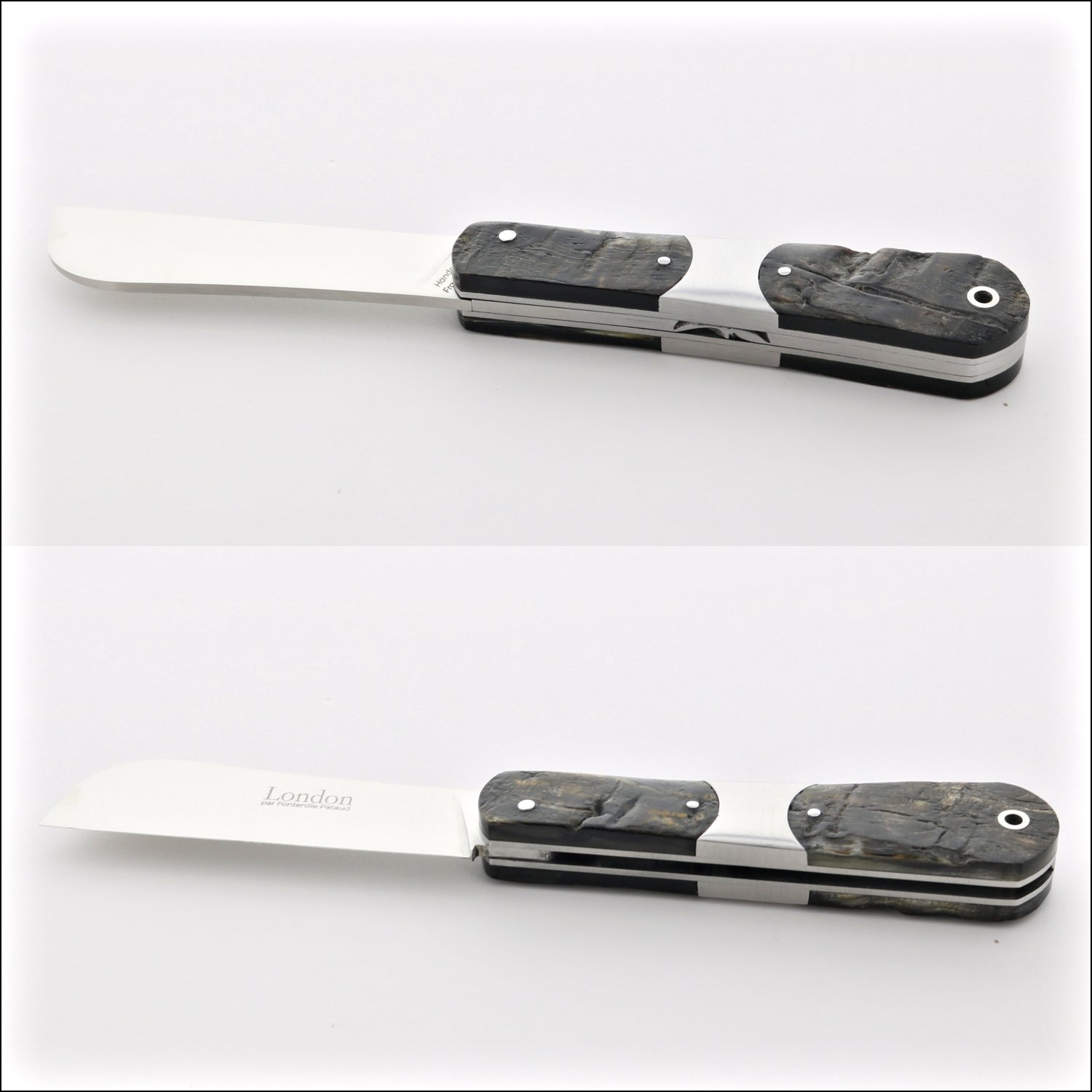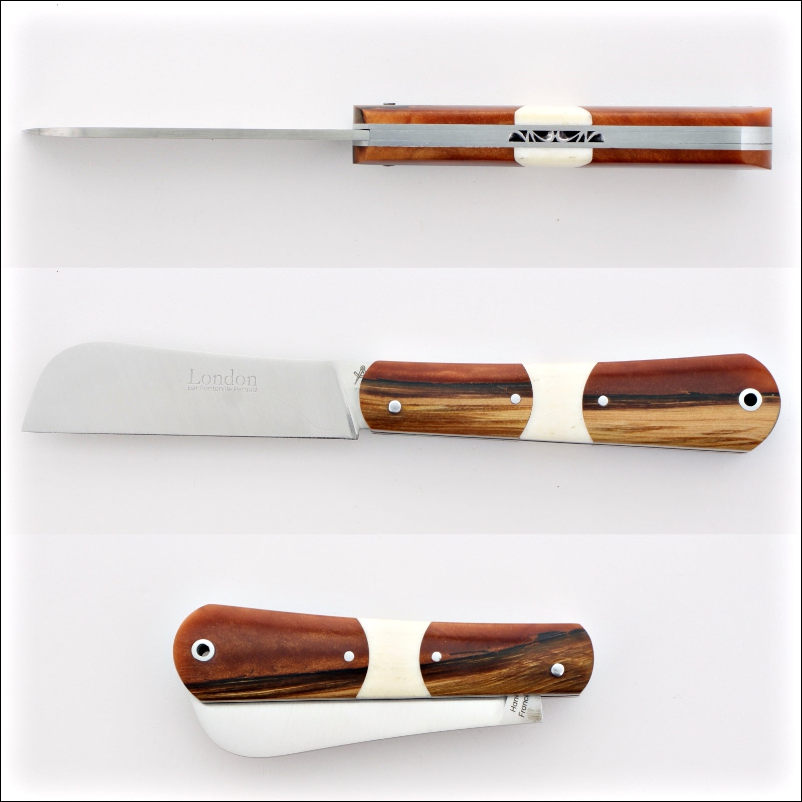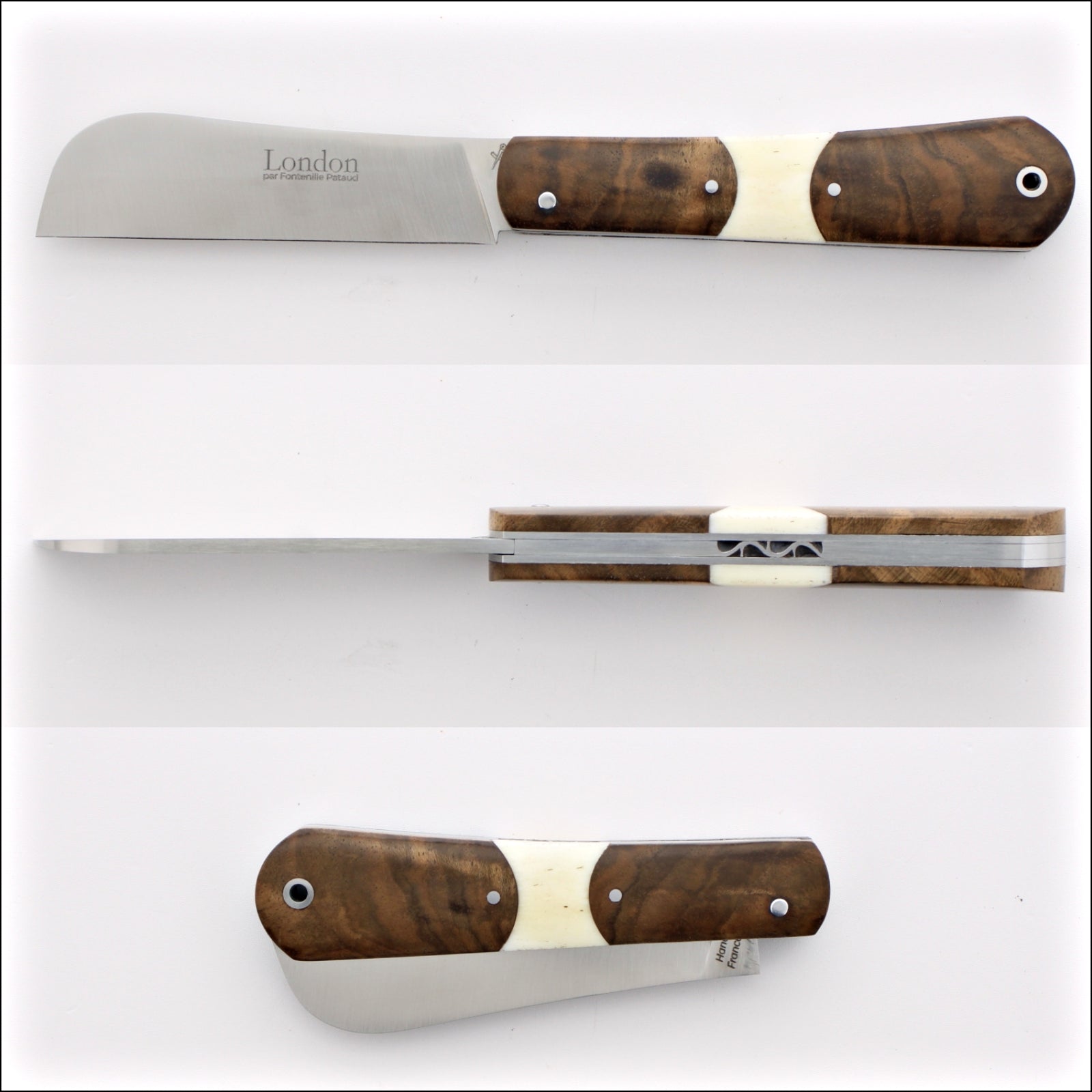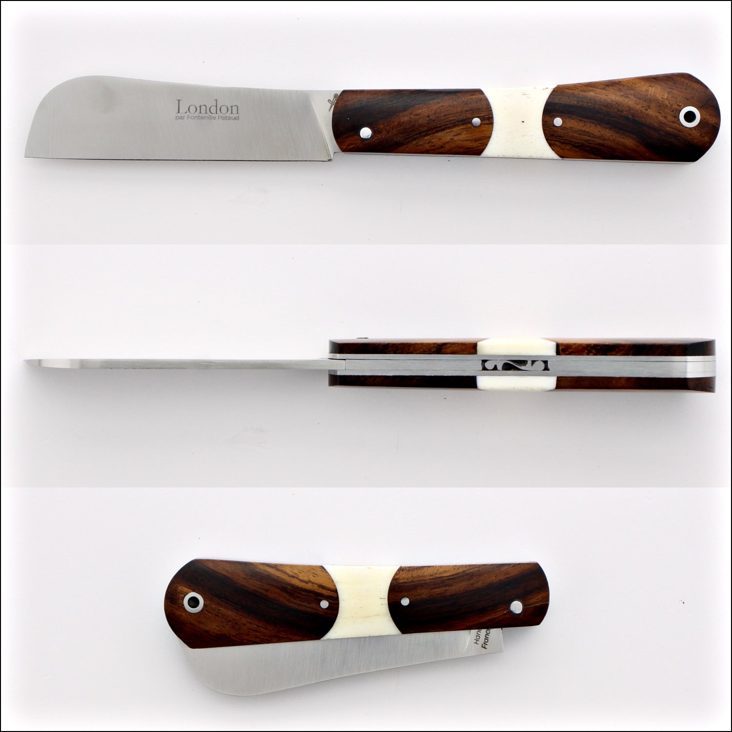 The Fontenille Pataud London Folding Knife is an exquisite piece of French craftsmanship from Thiers, a French city renowned for its centuries-old cutlery tradition. This modern iteration pays homage to the classic English "London Sailor's Knife" from the 19th century, reimagined for contemporary use with portability in mind — effortlessly fitting into a pocket or purse.