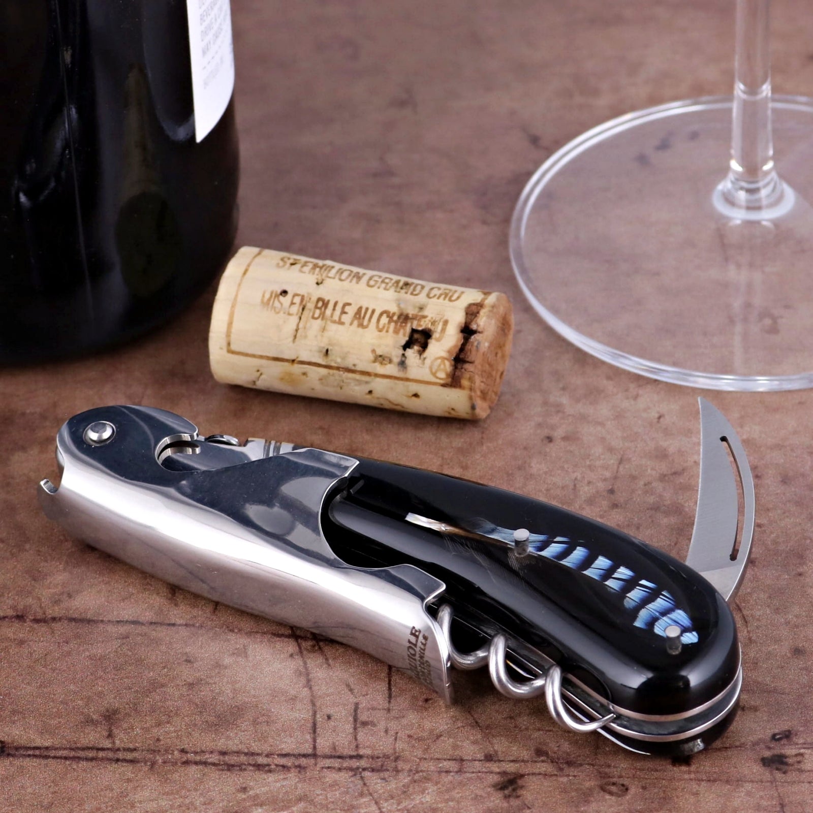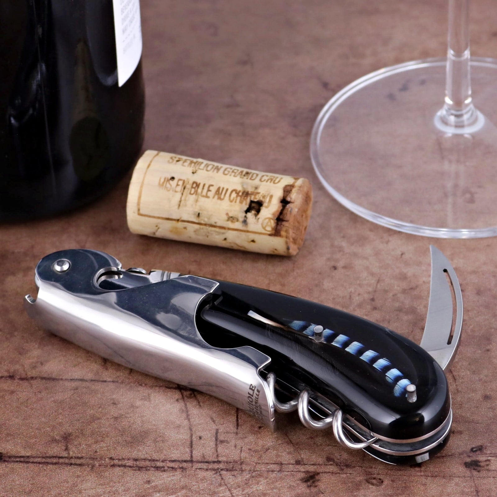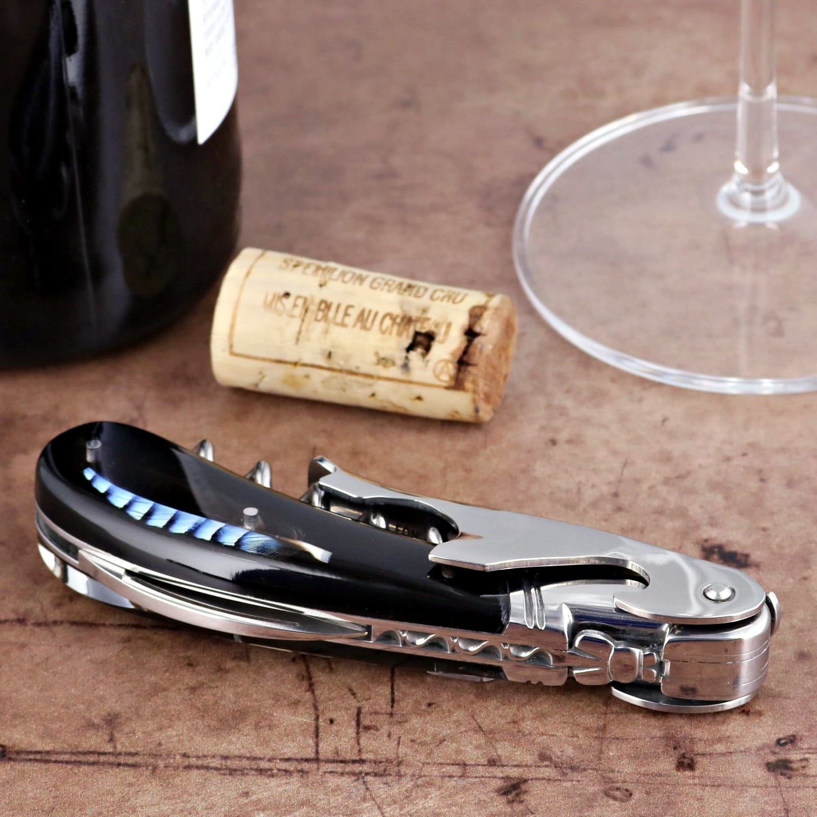 After years of planning, a bold version of the classic Laguiole corkscrew has finally reached the wine industry. This long-awaited high-end Laguiole waiter's corkscrew features a patented unibody two-step boot lever, a forged one-piece spring & bee, and a non-serrated foil cutter to facilitate sharpening. Its size and ergonomics set this two-step corkscrew apart from all others, including non-Laguiole corkscrews. At 5.6 oz, this waiter-style corkscrew is not a lightweight tool, but it feels surprisingly good in any size hands male or female. This object of pure luxury is taking over the two-step corkscrew business, and of course, it is 100% Made in France.