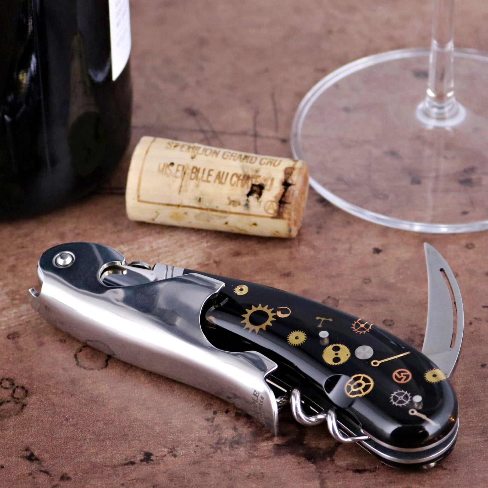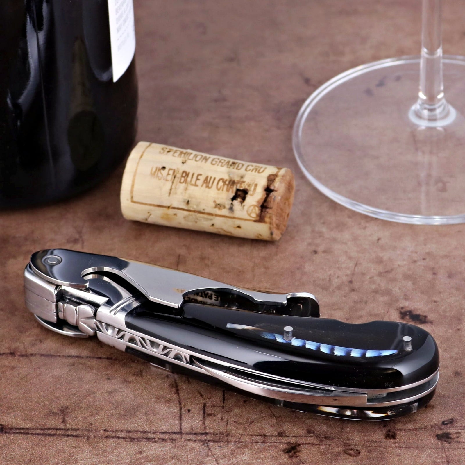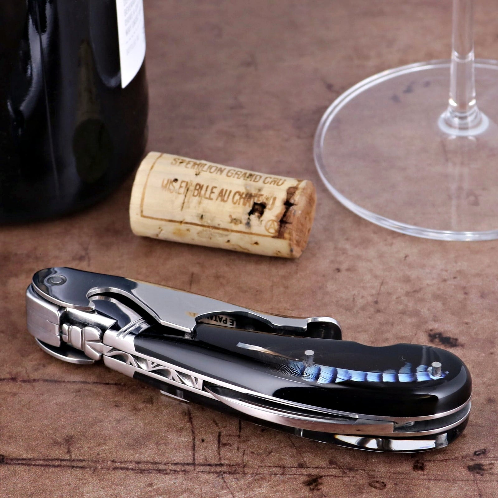 After years of planning, a bold version of the classic Laguiole corkscrew has finally reached the wine industry. This long-awaited high-end Laguiole waiter's corkscrew features a patented unibody two-step boot lever, a forged one-piece spring & bee, and a non-serrated foil cutter to facilitate sharpening. Its size and ergonomics set this two-step corkscrew apart from all others, including non-Laguiole corkscrews. At 5.6 oz, this waiter-style corkscrew is not a lightweight tool, but it feels surprisingly good in any size hands male or female. This object of pure luxury is taking over the two-step corkscrew business, and of course, it is 100% Made in France.