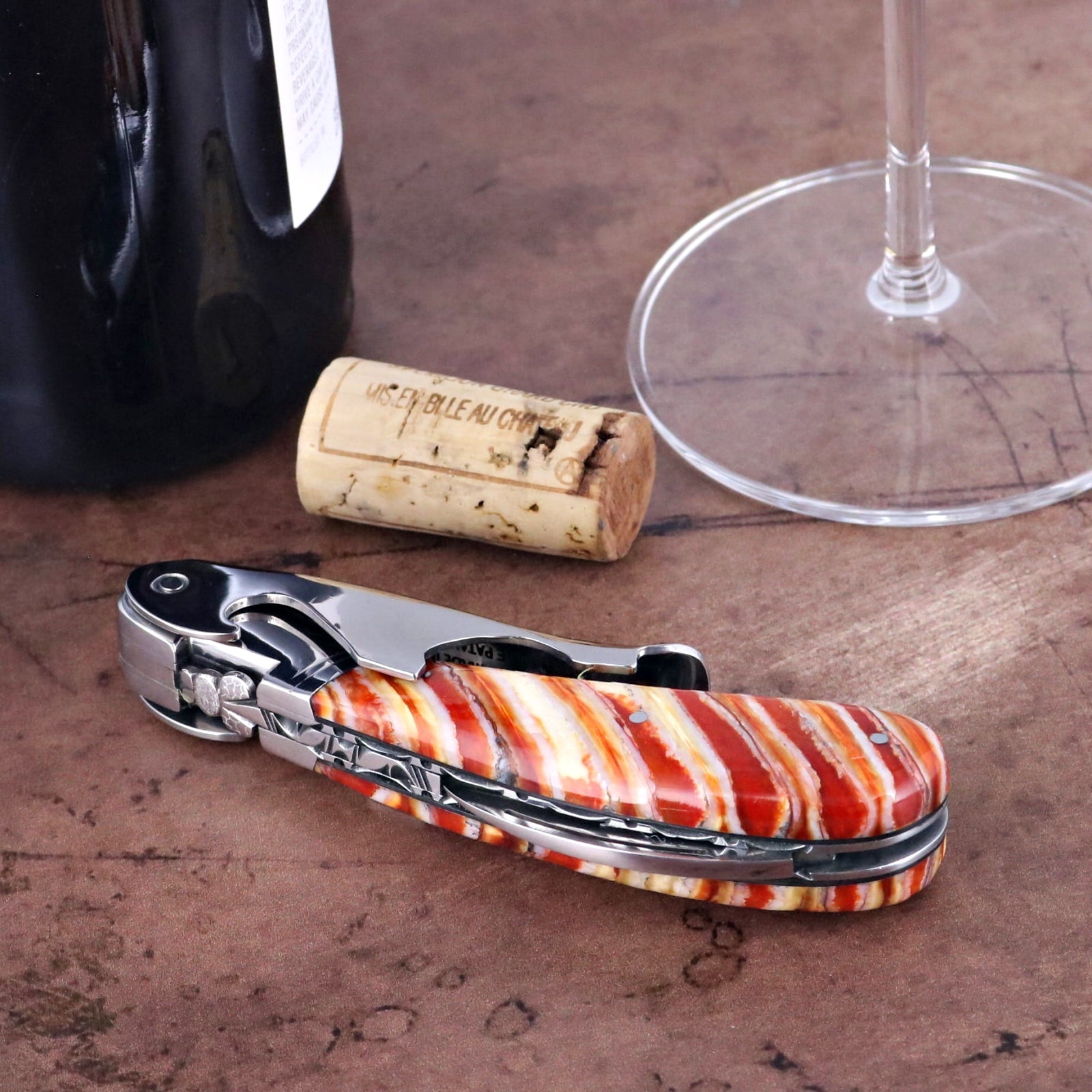 Individual images - No one wants to view photos of a beautiful and unique corkscrew and receive something similar but not even close to the representative image. Each corkscrew is particular; the file work on the spring (the top of the handle) ae individualy filed and; therefore, unique. Two handles made from the same material can have very different patterns or colors.