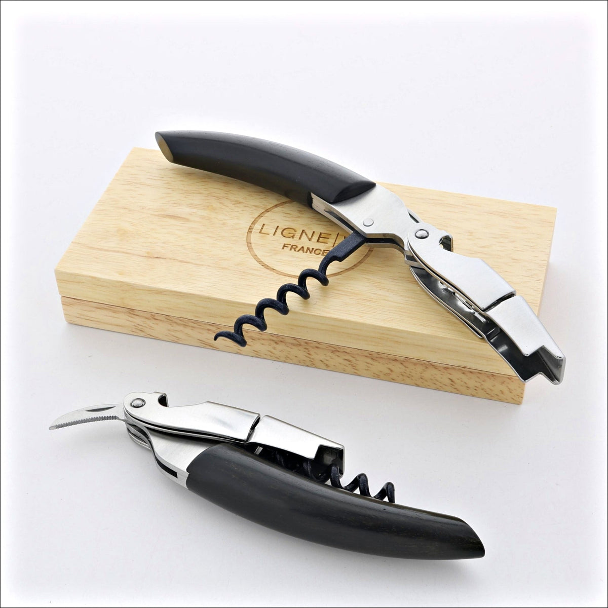 The Origine LIGNE W two-step wine opener is a must-have for any wine enthusiast. It features an easy-to-use, self-closing serrated foil cutter and a bottle opener, making it a versatile tool for all your wine-opening needs.