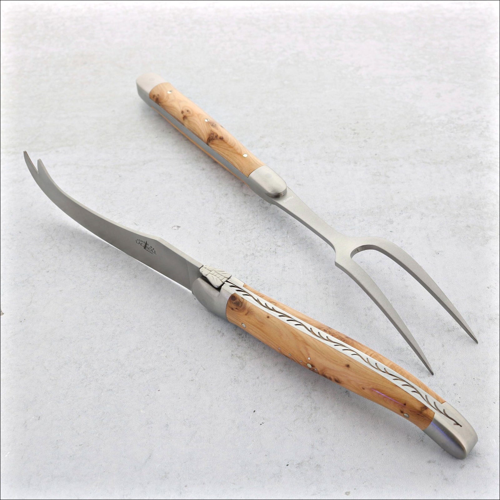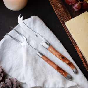 Elevate your cheese experience with the Forge de Laguiole Tradition Cheese Set. This set features a versatile knife for precise slicing and a fork for easy serving. It's ideal for any cheese type and is available in five-handle material to match your table setting. This set is perfect for any occasion. Enjoy or gift the art of cheese with elegance and style.