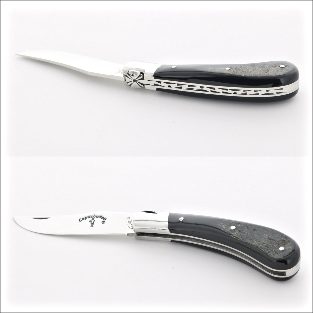 Before the development of the Laguiole in the 19th century, French shepherds carried a knife called the "Capuchadou" (or "capujadou"). This knife was used for all daily tasks, from preparing lunch to caring for their flocks of sheep. The four-leaf clover was added to provide good luck.