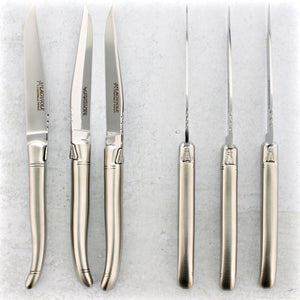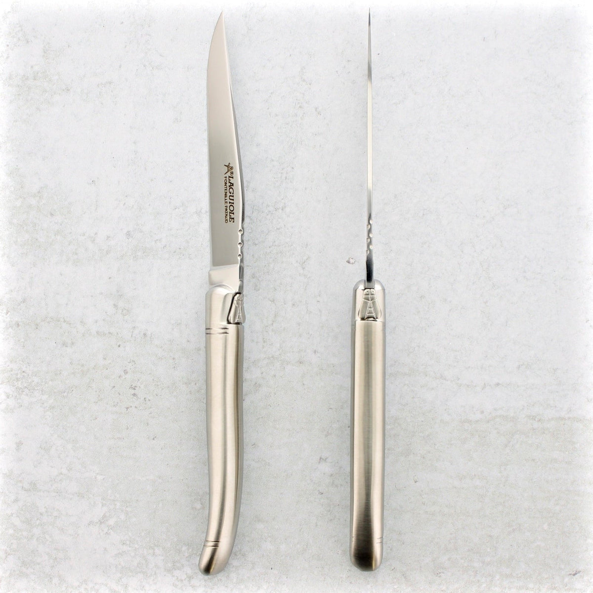 Each steak knife is forged from a single metal rod of Z40C13 Stainless steel, thus making them unique among all other Laguiole table knives on the market today.