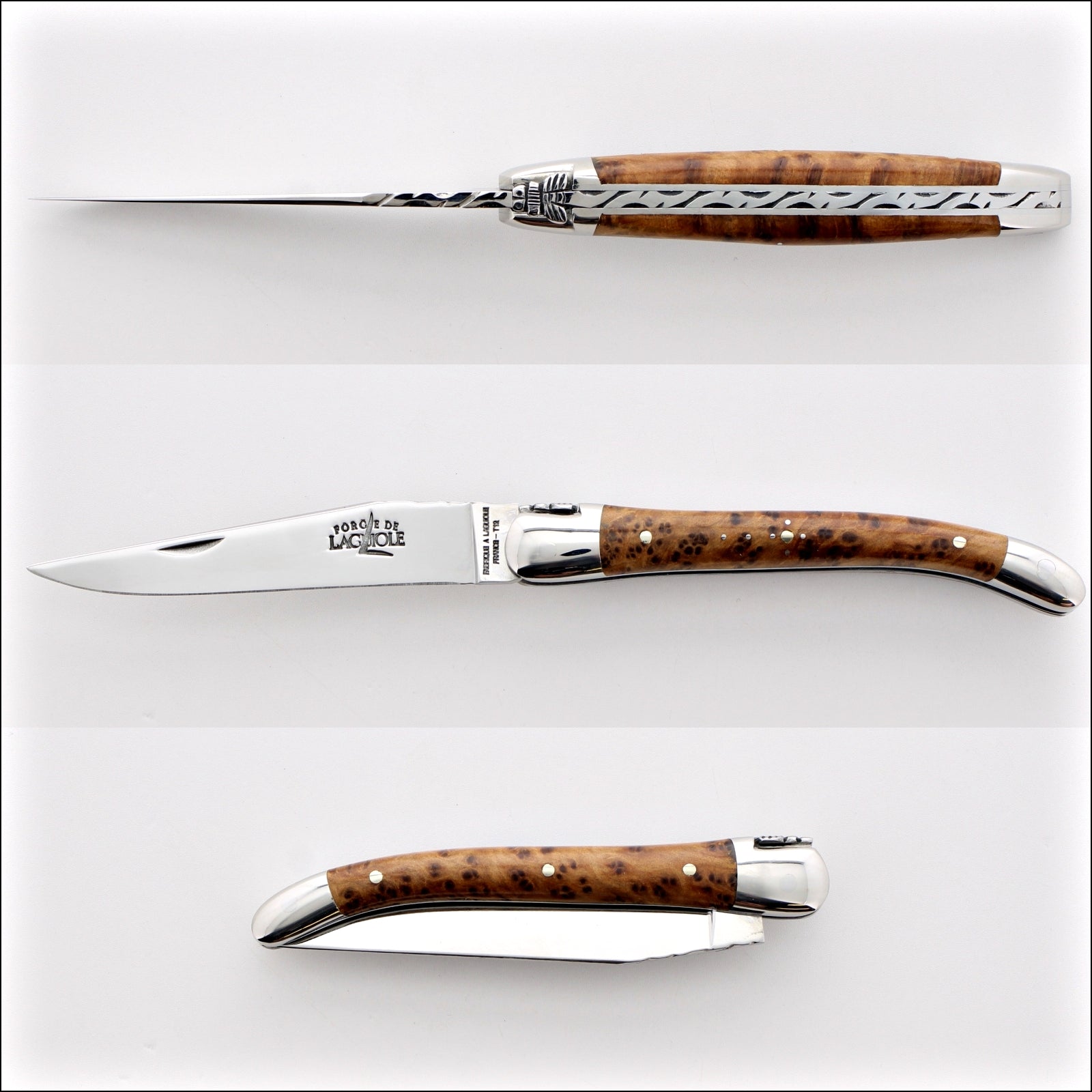 Forge de Laguiole knives are expertly handcrafted in the renowned village of Laguiole. Each gentlemen's knife showcases exceptional quality that surpasses all competitors. With meticulous attention to detail, these artisanal treasures are created by the same skilled craftsman, guaranteeing unmatched pride in every final masterpiece. Experience the ultimate blend of artistry and functionality with Forge de Laguiole knives.
