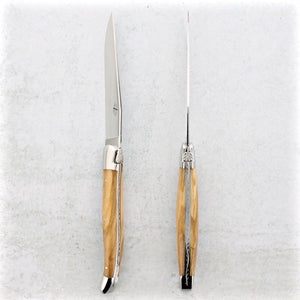 Forge de Laguiole table steak knives are manufactured in the village of Laguiole and feature the iconic bumblebee and the traditional shepherd's cross on most models. Forge de Laguiole represents the pinnacle of quality in the Laguiole cutlery business. Their reputation for integrity, ethics, and innovative designs has made these small 100 employees company the "Must Have" Laguiole luxury brand.