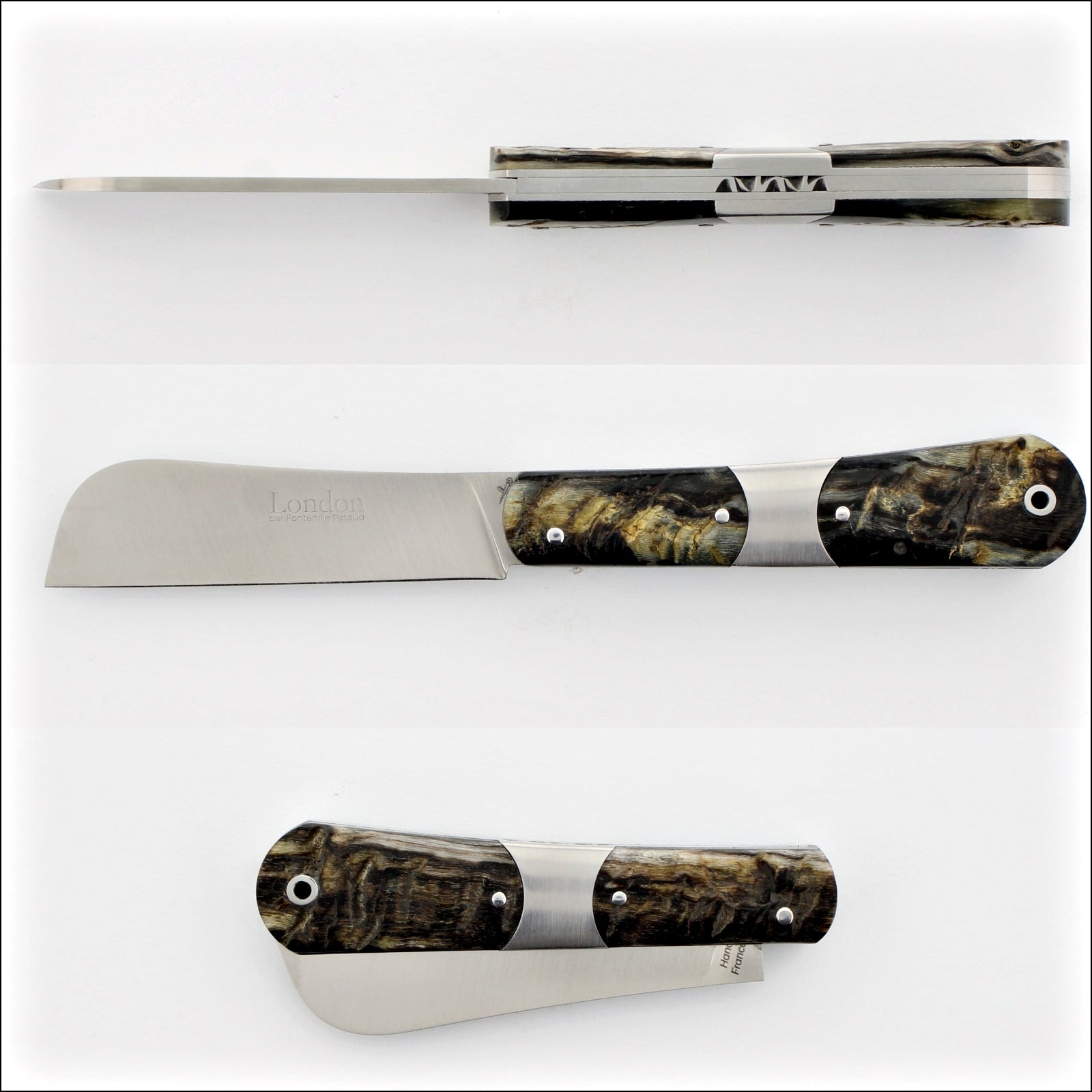 The Fontenille Pataud London Folding Knife is an exquisite piece of French craftsmanship from Thiers, a French city renowned for its centuries-old cutlery tradition. This modern iteration pays homage to the classic English "London Sailor's Knife" from the 19th century, reimagined for contemporary use with portability in mind — effortlessly fitting into a pocket or purse.