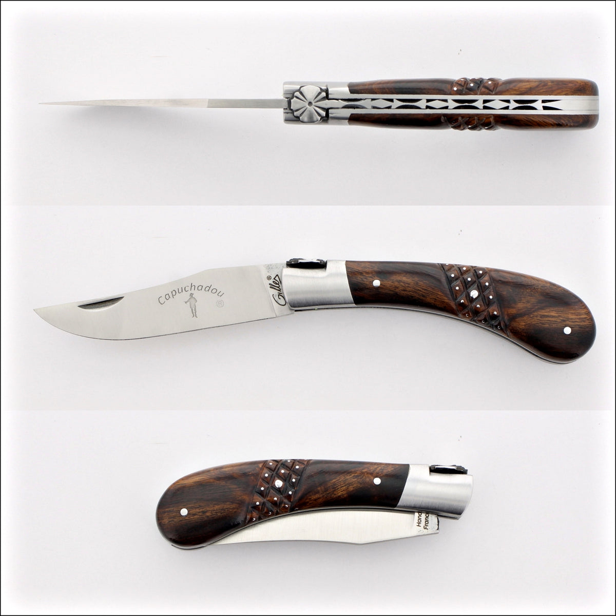 Before the development of the Laguiole in the 19th century, French shepherds carried a knife called the "Capuchadou" (or "capujadou"). This knife was used for all daily tasks, from preparing lunch to caring for their flocks of sheep. The four-leaf clover was added to provide good luck.