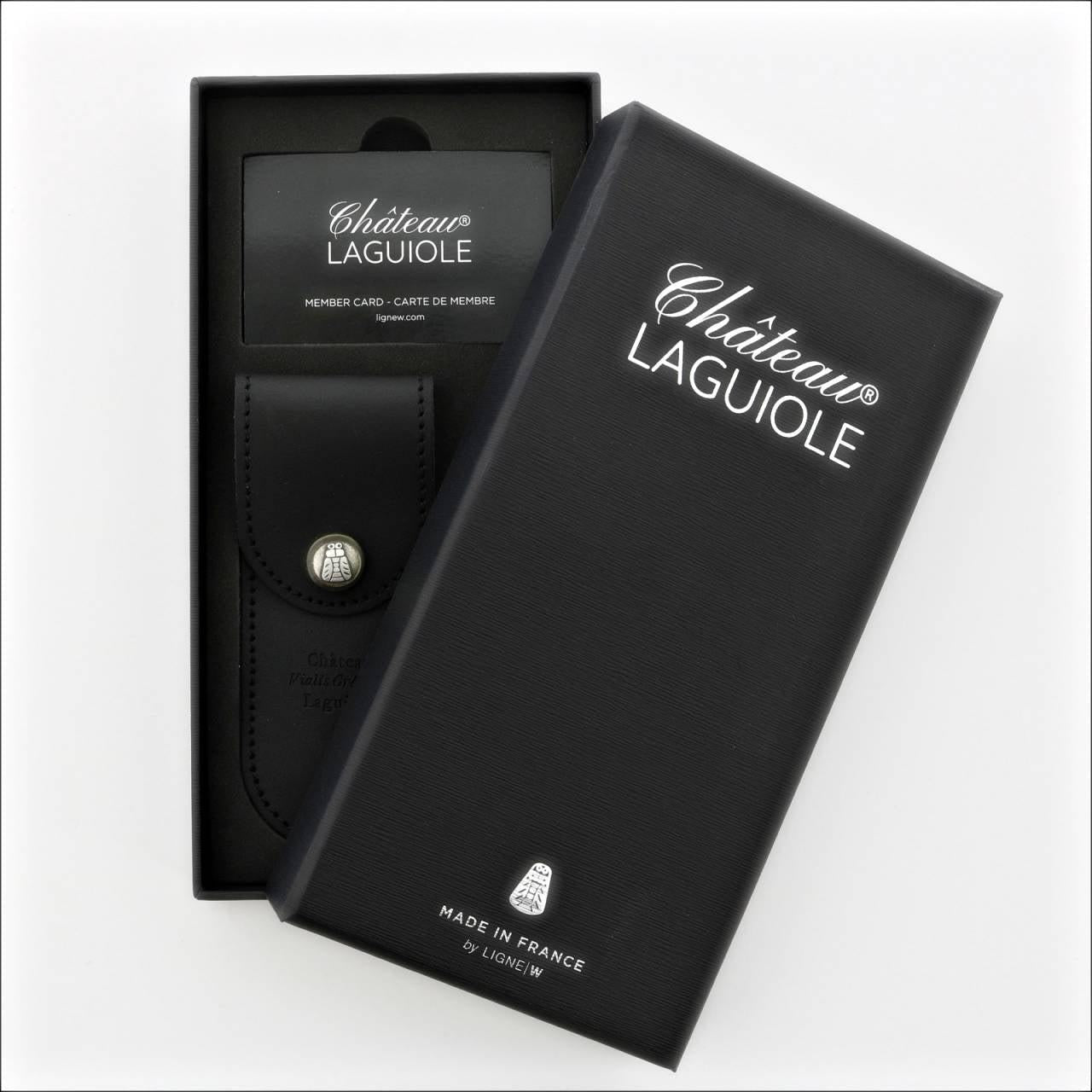 The sheath: The original Chateau Laguiole black belt sheath is used by countless waiters worldwide. This sheath accommodates belts up to 2 1/2" wide. Each sheath is made from carefully selected genuine cowhide is manufactured by Max Capdebarth of France.