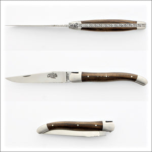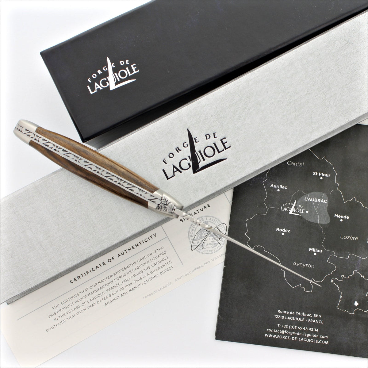 Handmade in the village of Laguiole, France, Forge de Laguiole knives are truly and by far the highest quality offered in the market today. Additionally, each masterpiece is handmade by the same craftsman to ensure pride in the completed piece.