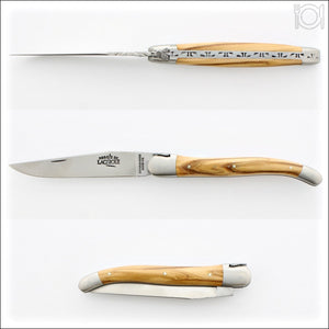 Olivewood harvested in France or Italy. Please note that the actual handle color and pattern of the item you receive may vary from the stock photos.