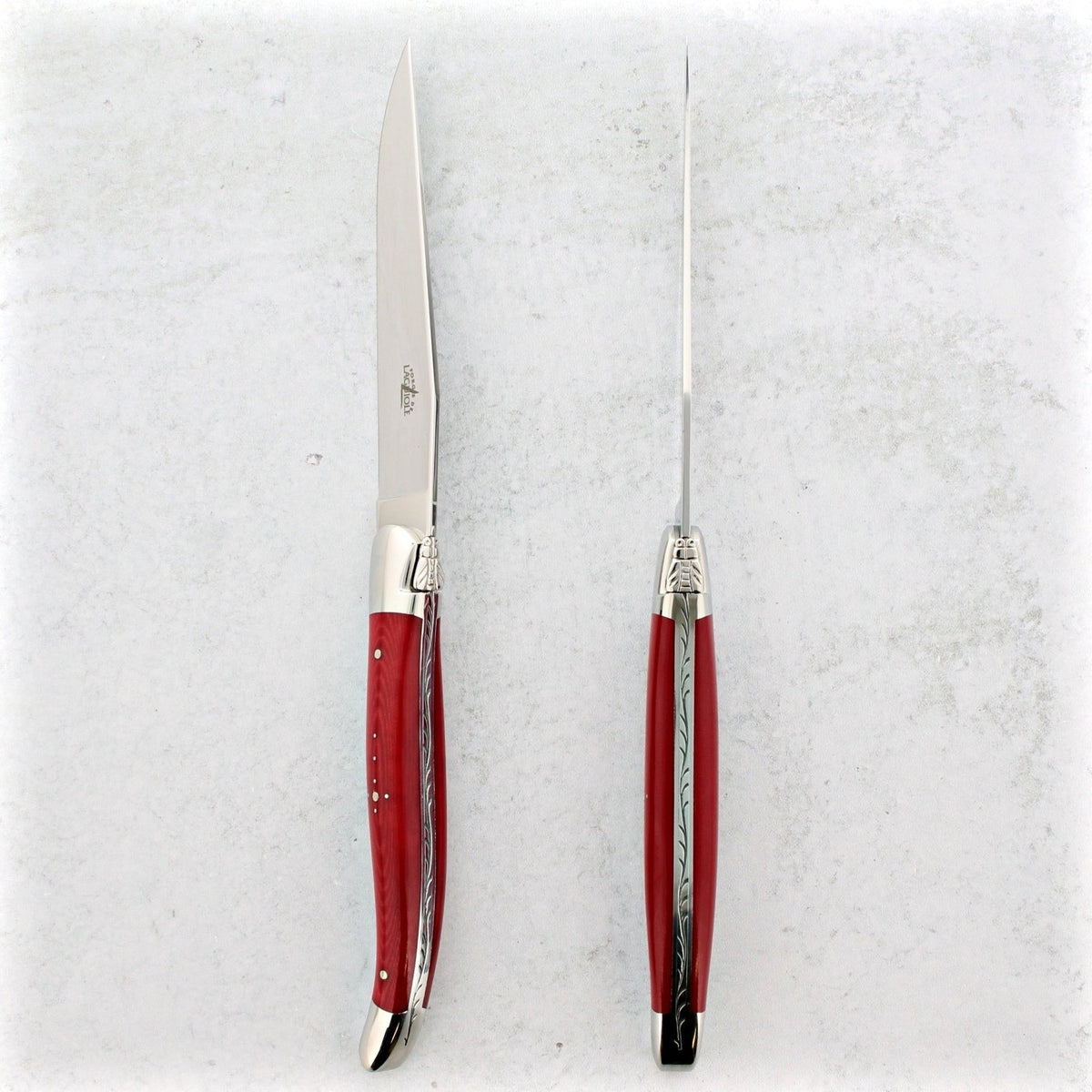 The Original Forge de Laguiole steak knives are used by the greatest Chefs around the world, including dozens of Michelin-Star restaurants. High-end steak knives are never serrated; one should not feel the need to "saw" a steak.