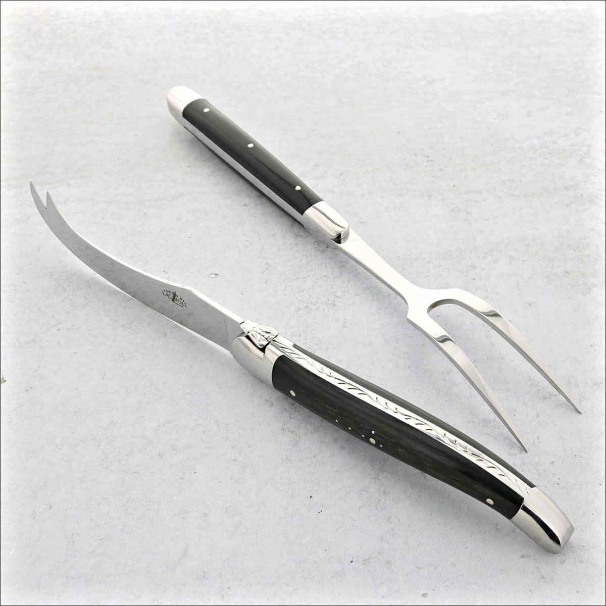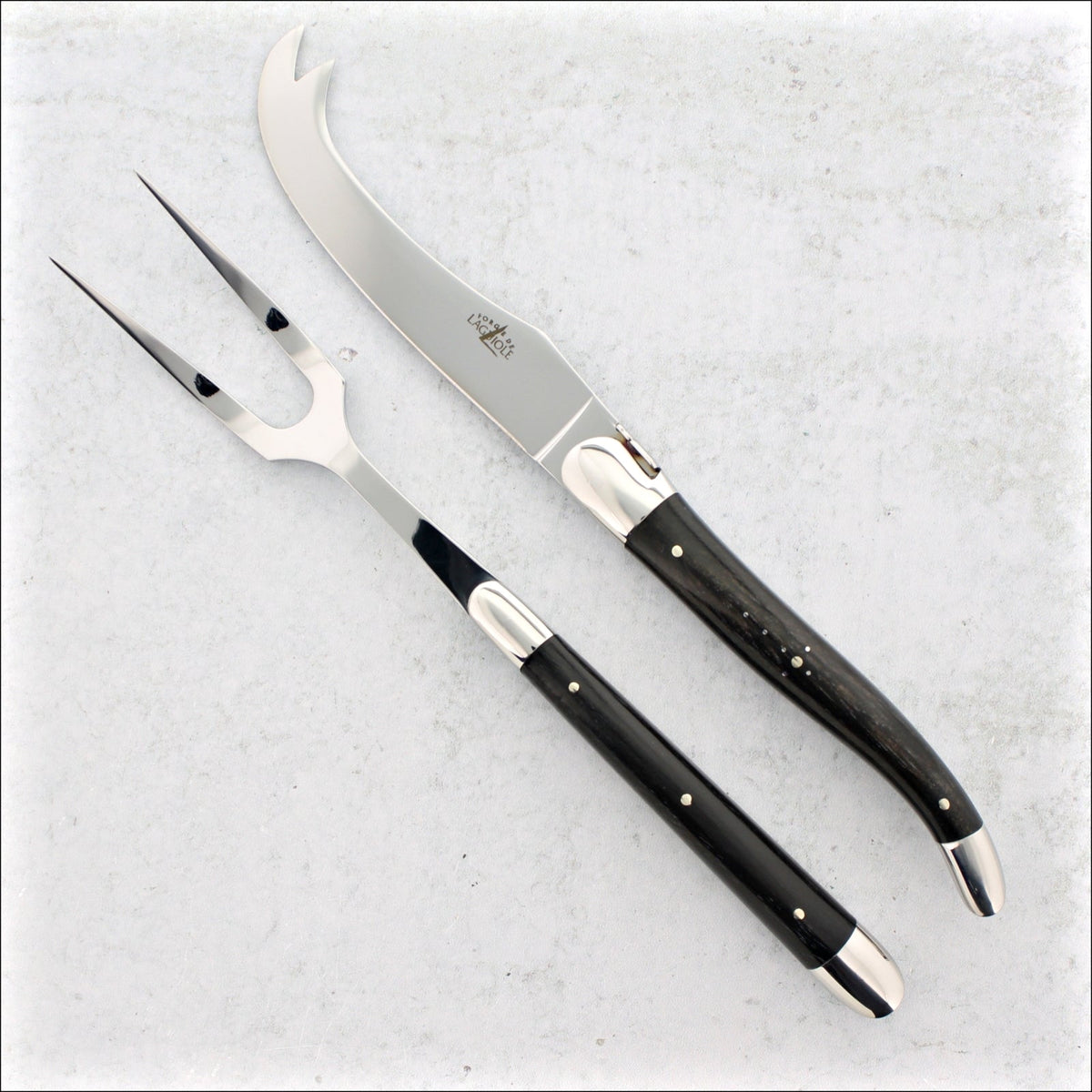 Elevate your cheese experience with the Forge de Laguiole Tradition Cheese Set. This set features a versatile knife for precise slicing and a fork for easy serving. It's ideal for any cheese type and is available in five-handle material to match your table setting. This set is perfect for any occasion. Enjoy or gift the art of cheese with elegance and style.