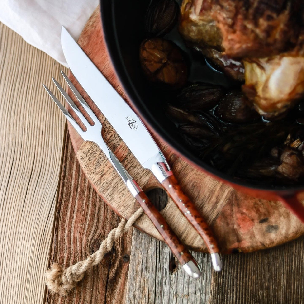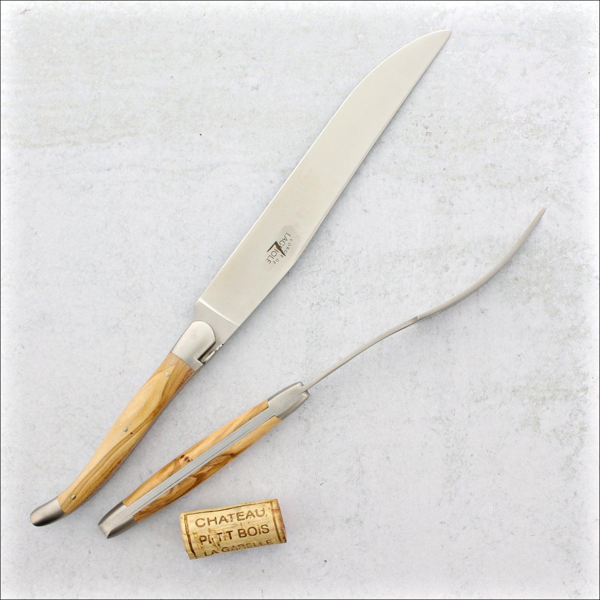 Laguiole Carving Set Olive Wood Handle Satin Finish