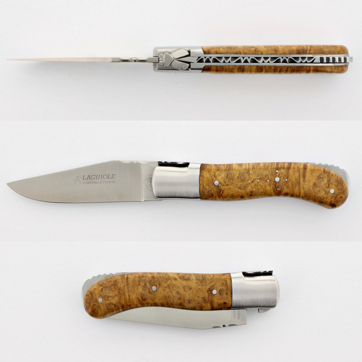 This knife was handmade in Europe's capital of cutlery, "Thiers." The “Gilles®” Fontenille Pataud collection of knives are considered by many to be some of the best pocket knives money can buy. All Knives offered by Gilles are entirely made by a single craftsman from start to finish ensuring pride of ownership of the final piece., 100% Made in France.