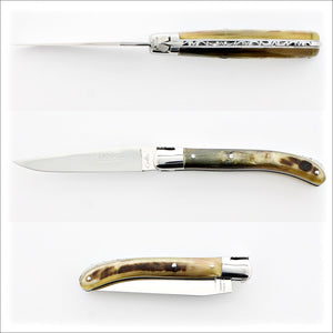 This sleek pocket knife features a precise lock-back mechanism for secure blade locking during use. Teflon washers ensure smooth and safe operation while opening and closing the blade. The one-piece forged spring and "Bee" add to its elegance. With a 10.5 cm (4.10") handle, this compact Laguiole folding knife tackles everyday tasks with style and sophistication.