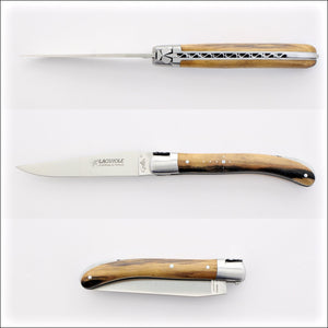 This sleek pocket knife features a precise lock-back mechanism for secure blade locking during use. Teflon washers ensure smooth and safe operation while opening and closing the blade. The one-piece forged spring and "Bee" add to its elegance. With a 10.5 cm (4.10") handle, this compact Laguiole folding knife tackles everyday tasks with style and sophistication.
