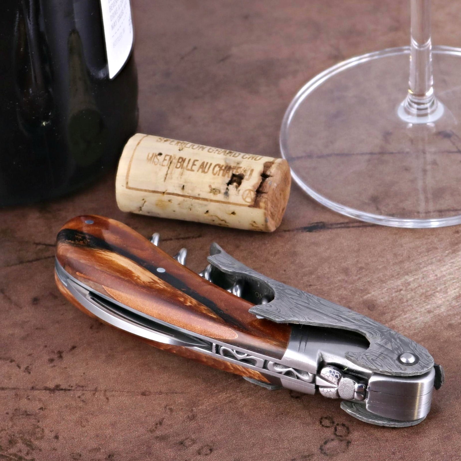 Laguiole Magnum Damascus Hybrid Juniper Corkscrew
