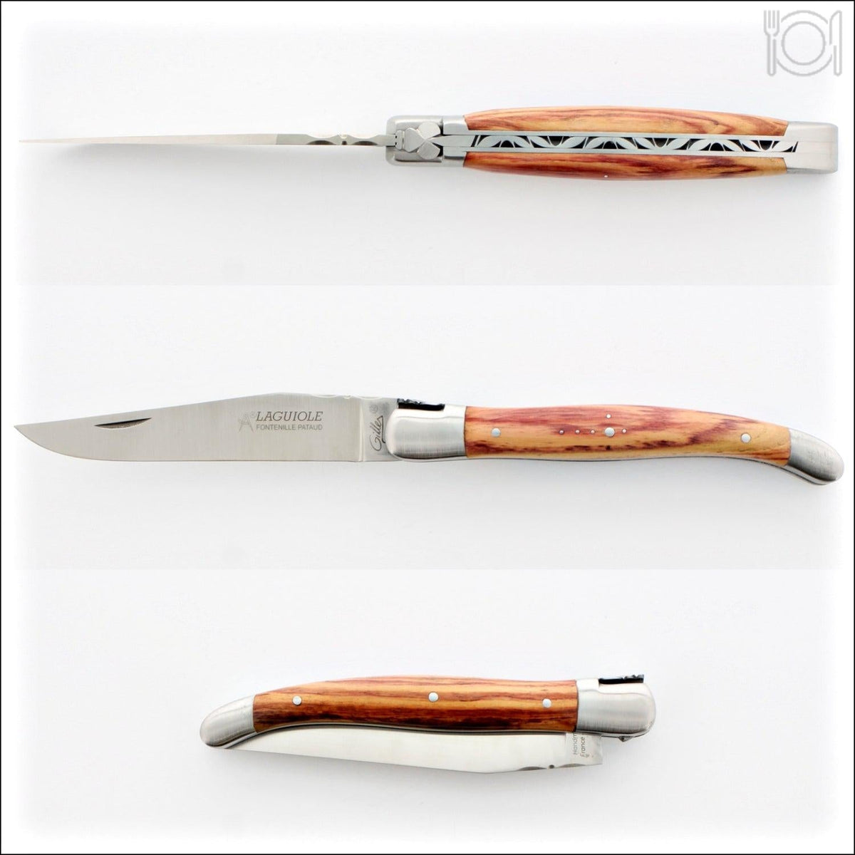 The Laguiole knife originated in Laguiole, France in the early 1820s. Later, its manufacturing was moved to the city of Thiers, France, which was more industrialized. This knife was crafted entirely by hand in Thiers, known as Europe's cutlery capital. The collection of "Gilles®" Fontenille Pataud knives is widely regarded as some of the finest French pocket knives available for purchase.
