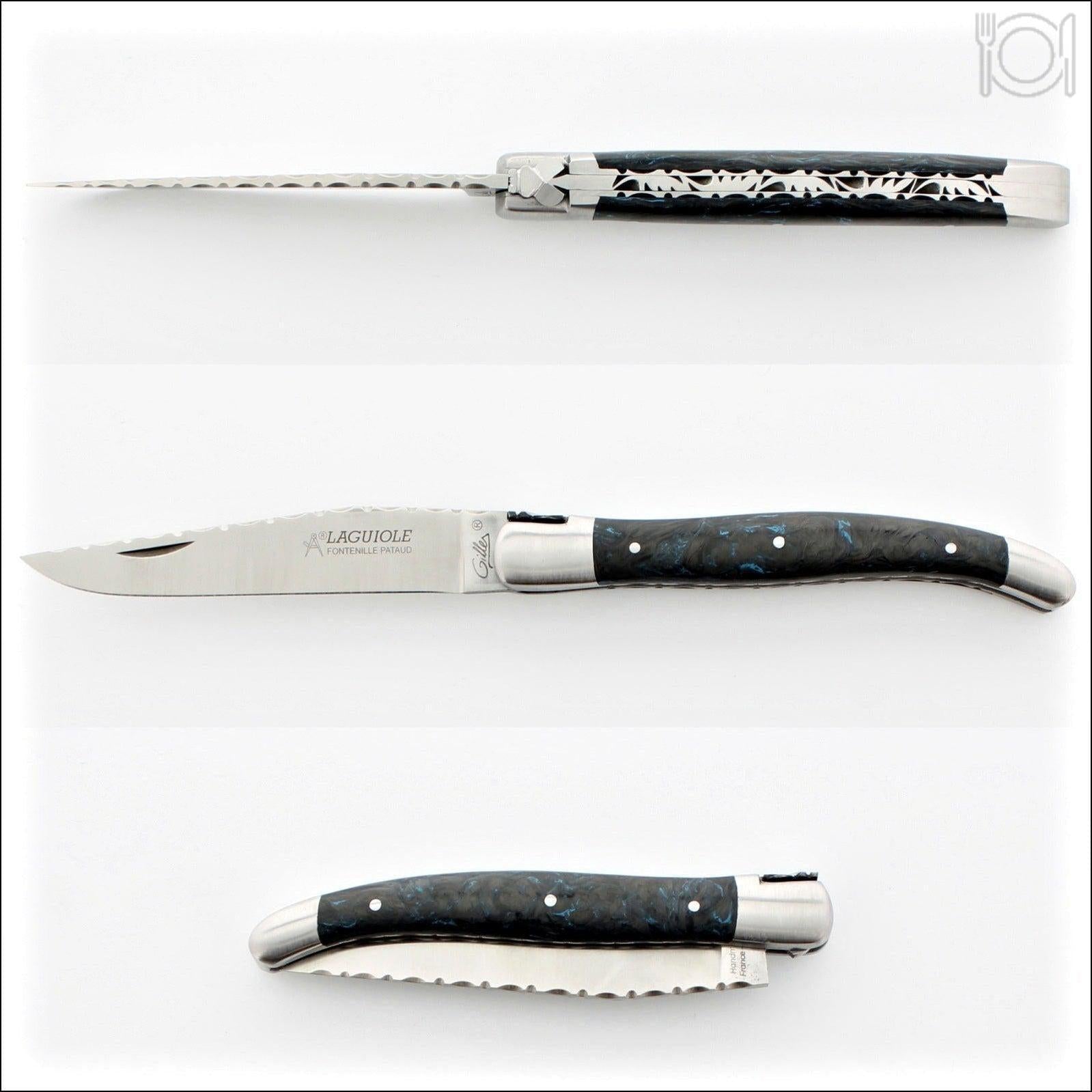 Laguiole Traditional Knife 12 cm Guilloche Blue Dark Matter