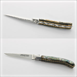 Technical aspects: The Teflon-assisted lockback system ensures smooth and effortless opening and closing. Additionally, the knife boasts a sturdy, hardened blade stop to prevent the blade's edge from touching the spring's inner area. These meticulous details, combined with unparalleled craftsmanship and attention to precision, make each knife genuinely unique. Fontenille Pataud knives are proudly made in France, with utmost quality and dedication.