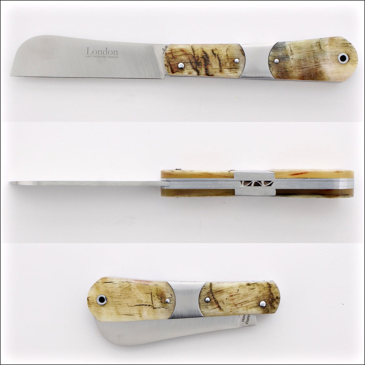 The Fontenille Pataud London Folding Knife is an exquisite piece of French craftsmanship from Thiers, renowned for its centuries-old cutlery tradition. This modern iteration pays homage to the classic "London Sailor's Knife" from the 19th century, reimagined for contemporary use with portability in mind — effortlessly fitting into a pocket or purse.