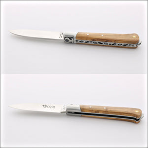Technical aspects: Smooth, easy opening & closing are provided by a Teflon-assisted lock back system. This knife also features a solid hardened blade stop to help prevent the blade's edge from contacting the inner area of the spring. 100% Made in France