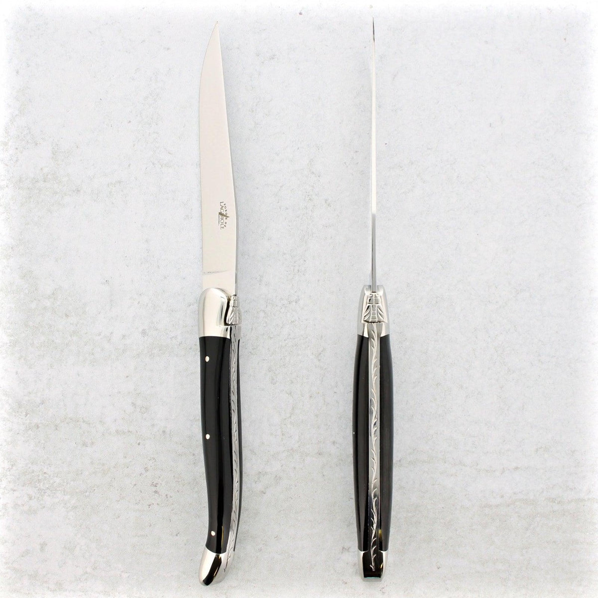 Forge de Laguiole Dark Horn Tip Steak Knives - Set of 2