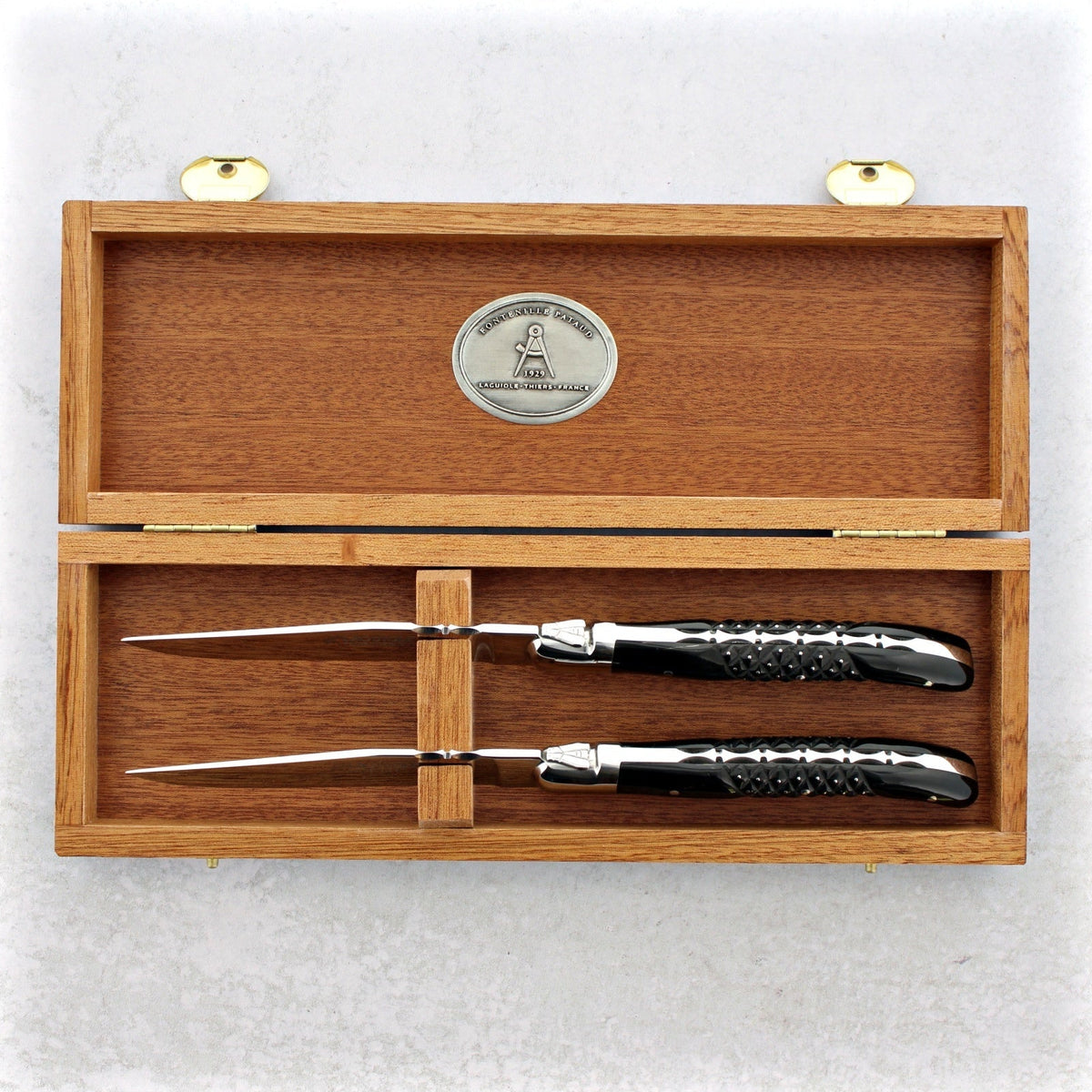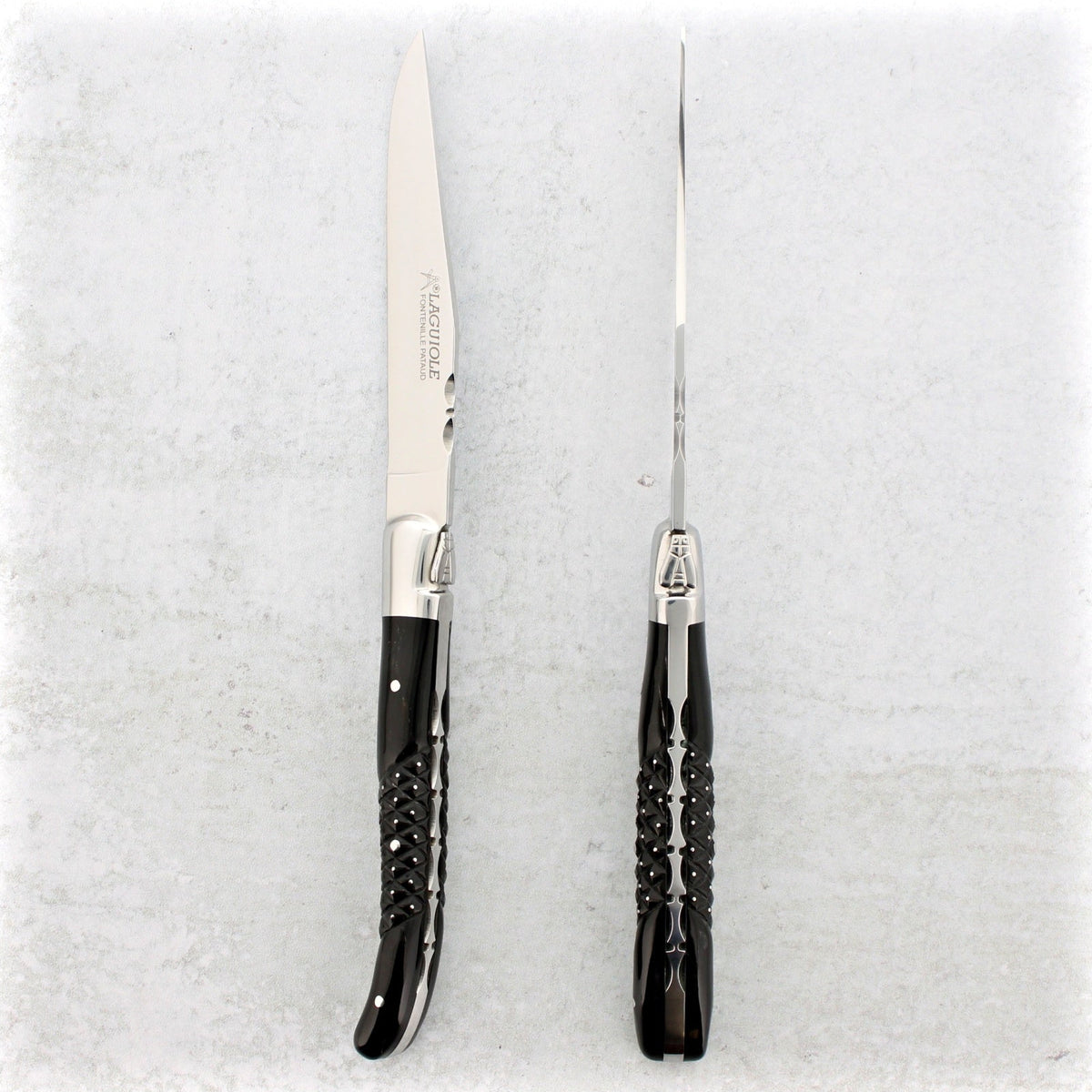 Laguiole Forged Steak Knives Studded Black Horn Tip - Set of 2