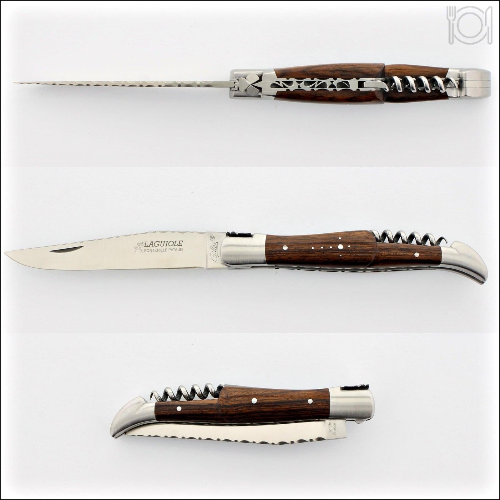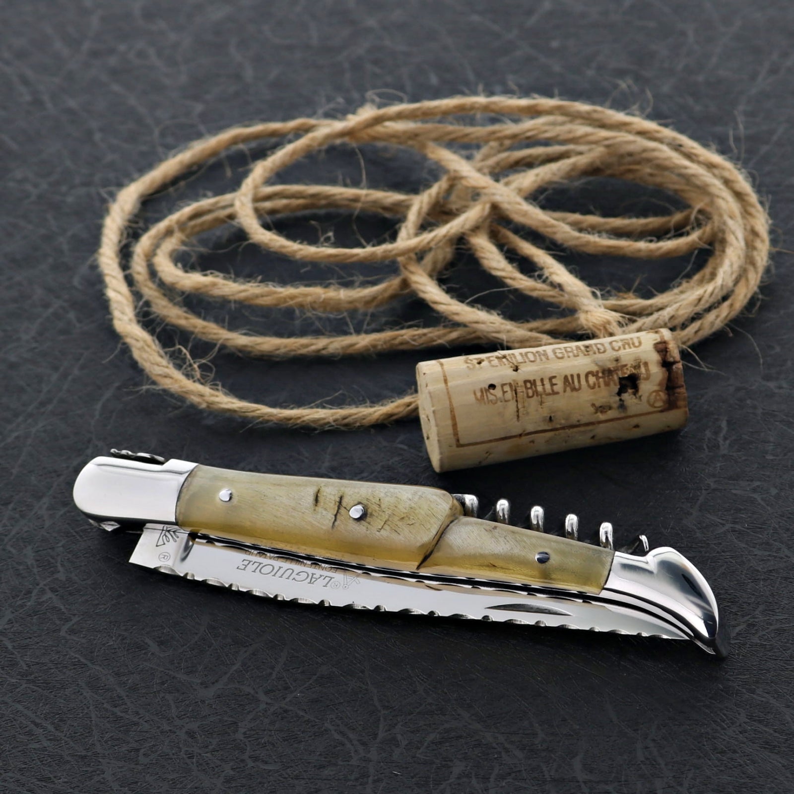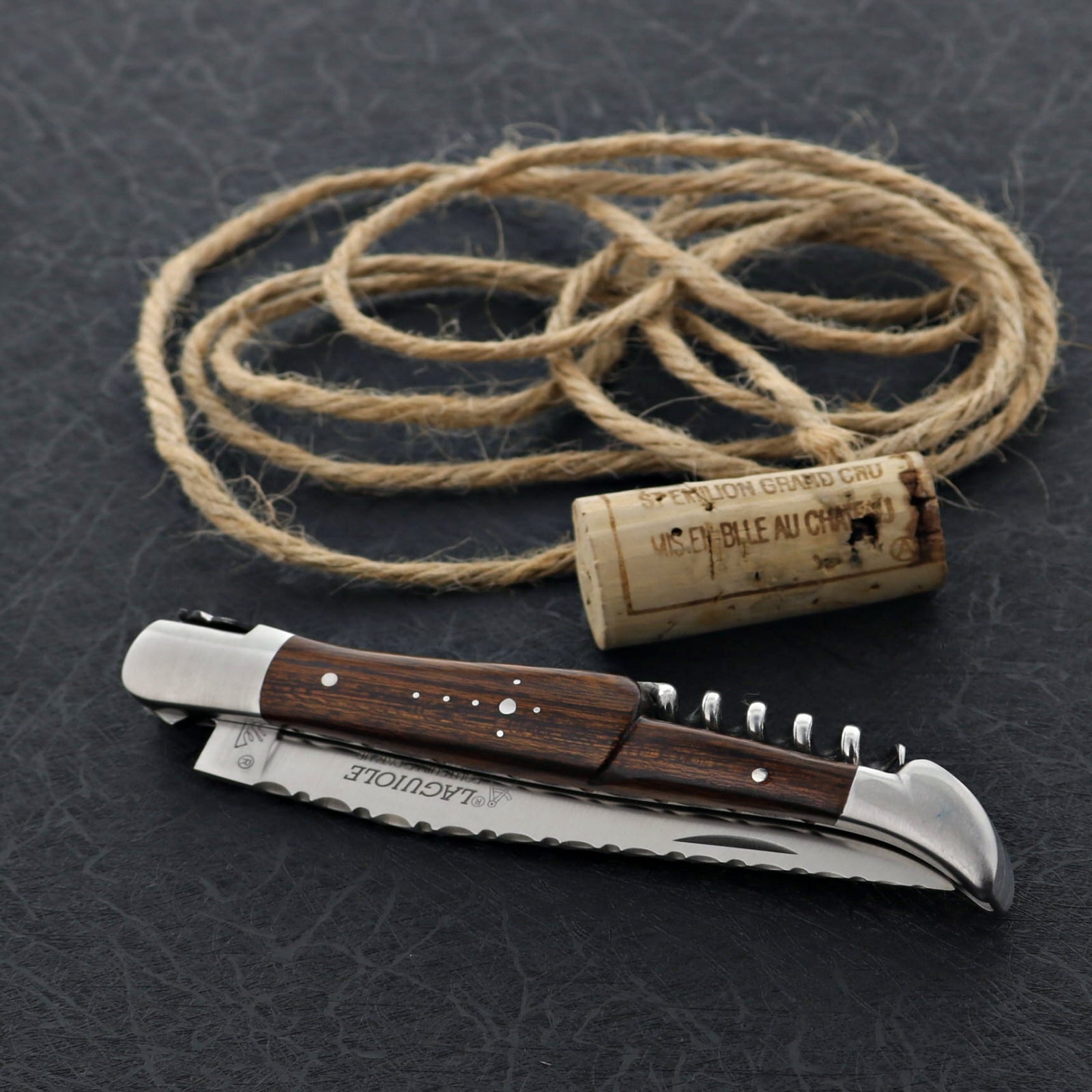 Laguiole Corkscrew knives, also known as "Laguiole 2 piece", were introduced in the 1880s when corked wine bottles became popular in urban society. This addition was a response to the request of the Aveyron people who had migrated to work in the cafes of Paris. The cafe owners and waiters, proud of their traditions, were keen on using their 2-piece knife in the capital. Each picnic knife is equipped with a sturdy blade stop, ensuring the protection of the blade edge when closing the knife.