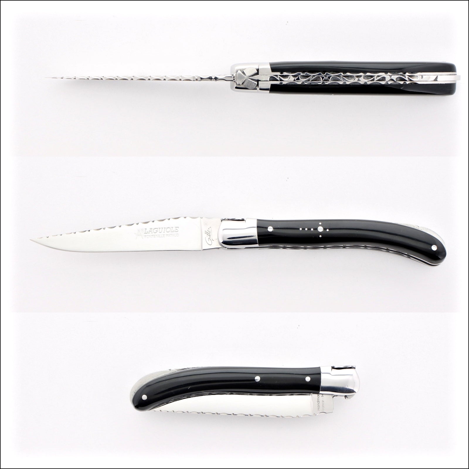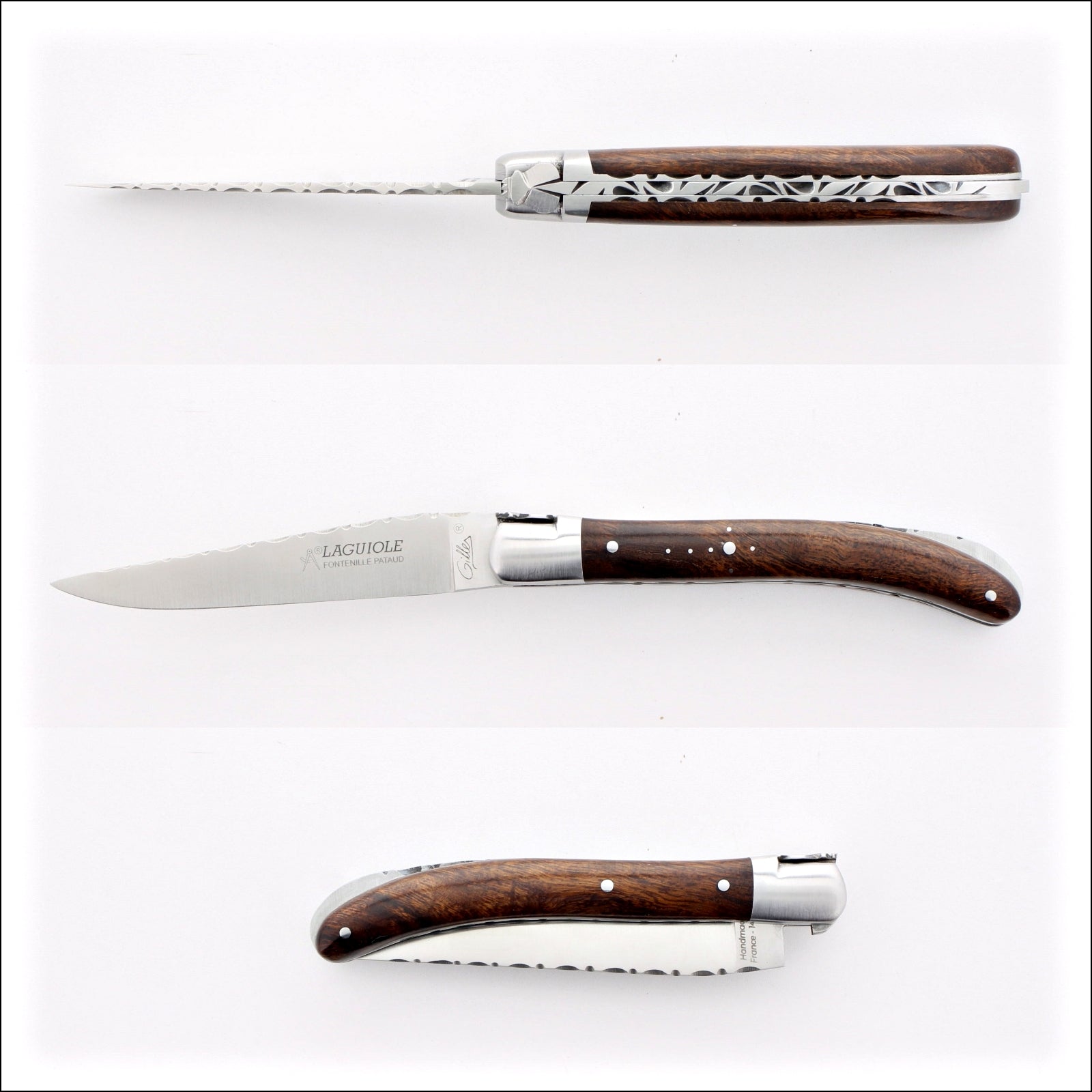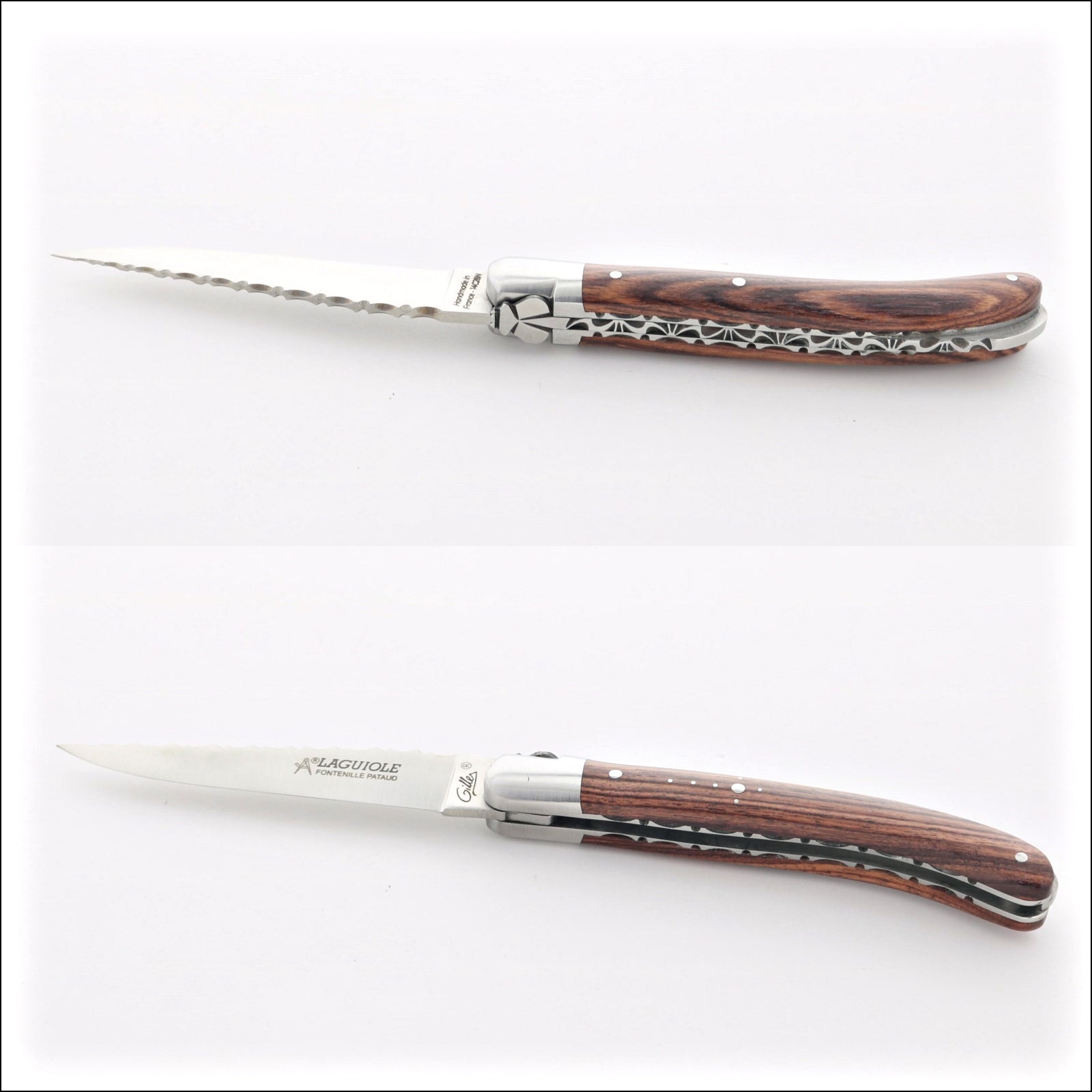 Crafted for beauty and precision, this sleek pocket knife incorporates a secure lock-back mechanism and Teflon washers for smooth blade operation. The one-piece forged spring and "Bee" add elegance to its form. With a 10.5 cm (4.10") handle, this Laguiole folding knife packs a punch of sophistication in its compact design. Perfect for tackling everyday tasks, all with a touch of style. The Guilloche series features a fully chiseled blade top as well as chiseled liners top and bottom.