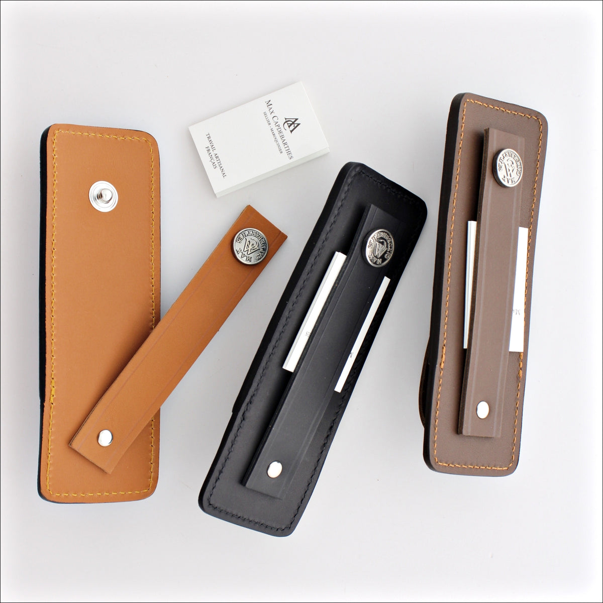 With only five craftsmen (actually primarily women), Max Capdebarthes has mastered every aspect of leathercrafting to produce the best knife sheaths money can buy at any price. Most knife manufacturers consider Max Capdebarthes the best leather sheath craftsman in Europe, perhaps the world. Some of France's most acclaimed cutlers, such as Forge de Laguiole and Fontenille Pataud, contract Max for their sheath needs.