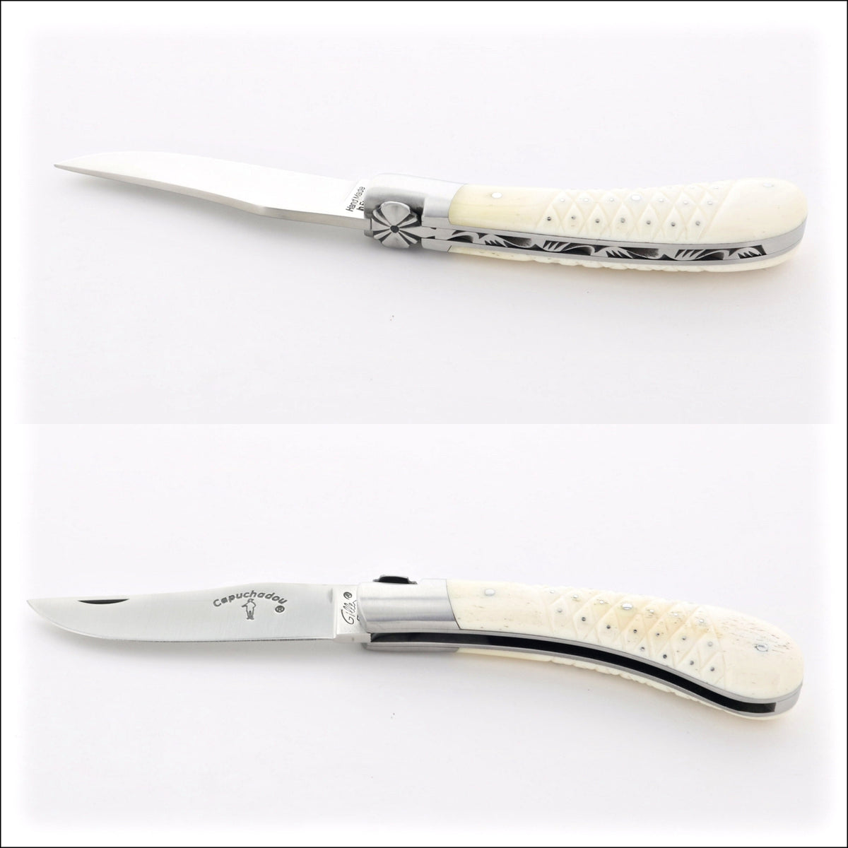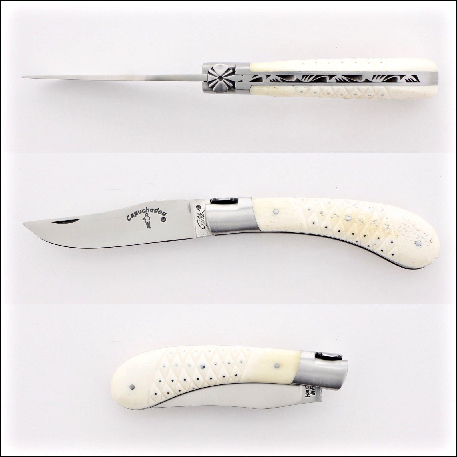 Before the development of the Laguiole in the 19th century, French shepherds carried a knife called the "Capuchadou" (or "capujadou"). This knife was used for all daily tasks, from preparing lunch to caring for their flocks of sheep. The four-leaf clover was added to provide good luck.
