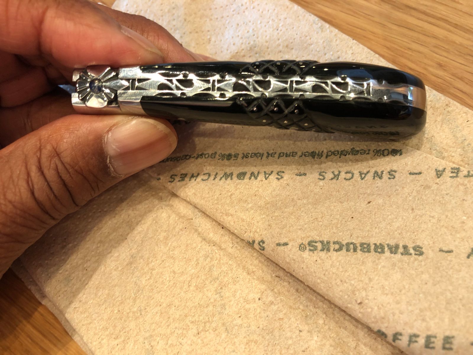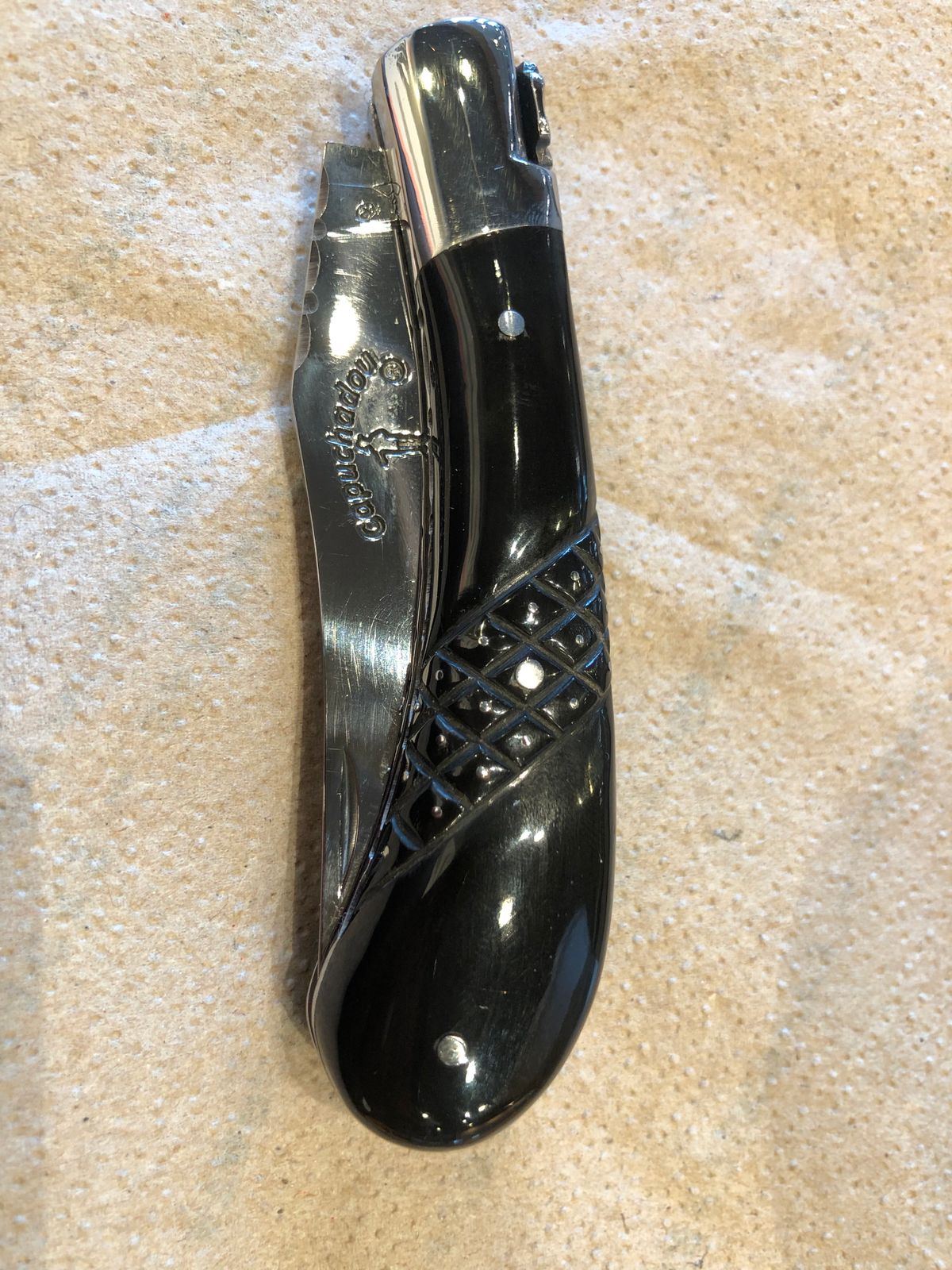 Capuchadou 10 cm Folding knife Guilloché & Studded Black Horn Tip