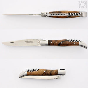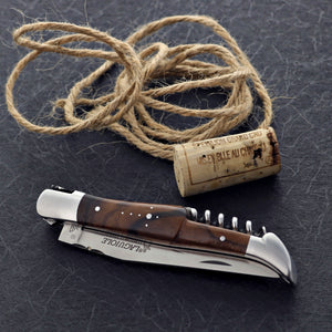 The corkscrew was added to the Laguiole knife in the 1880s. This addition resulted from the sale of corked wine bottles in urban society and in response to the request by the people of Aveyron, who had left to find work in the cafes of Paris. Café owners and waiters remained loyal to their traditions and were proud to use their 2-piece knife in the capital.