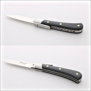 Corsican L' Antò Classic pocket knife by Fontenille Pataud. This EDC features a clever locking blade system located on top of the handle. Easy and comfortable to use, each user will find his or her own way to trigger it. This Corsican knife like all others offered by Fontenille Pataud was created in collaboration with the Zuria family of Bonifacio Corsica.