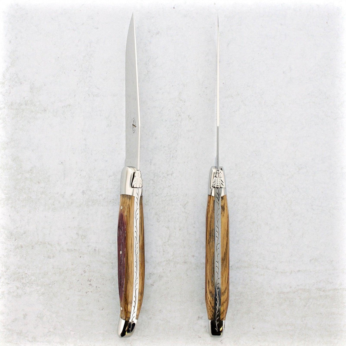 With their iconic Laguiole curved design, these knives are elegant and ergonomic. They combine the heftiness of weight with unsurpassed sharpness to make cutting a breeze!