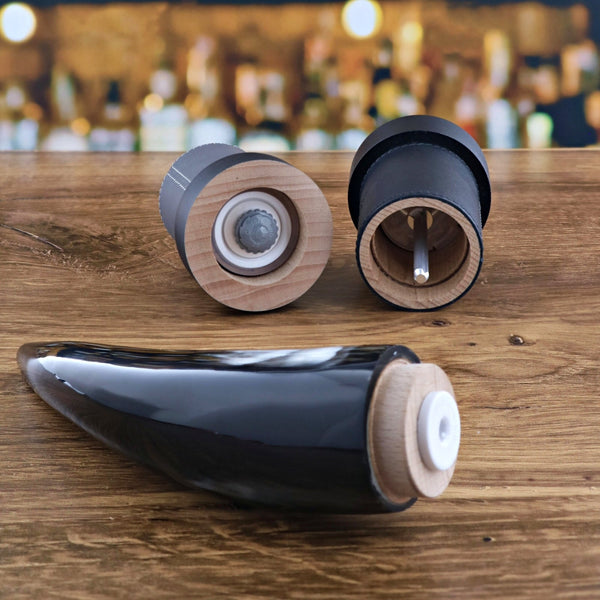 This marvelous mill is crafted from the horn of an Aubrac cattle – encased in wood and finished with genuine leather; its unique design will captivate anyone's gaze!
