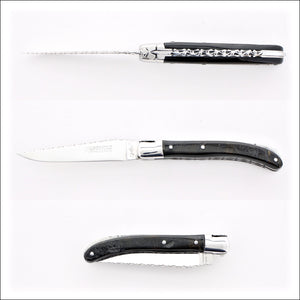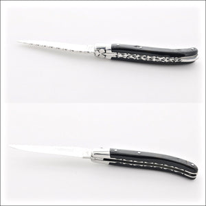 This elegantly designed pocket knife incorporates a precision lock back mechanism to ensure that the blade locks securely when in use. The addition of Teflon washers will make sure that the blade action operates smoothly and safely during opening and closing. One-piece forged spring and "Bee". With a 10.5 cm (4.10") handle, this small Laguiole folding knife will handle small daily tasks with style and elegance.
