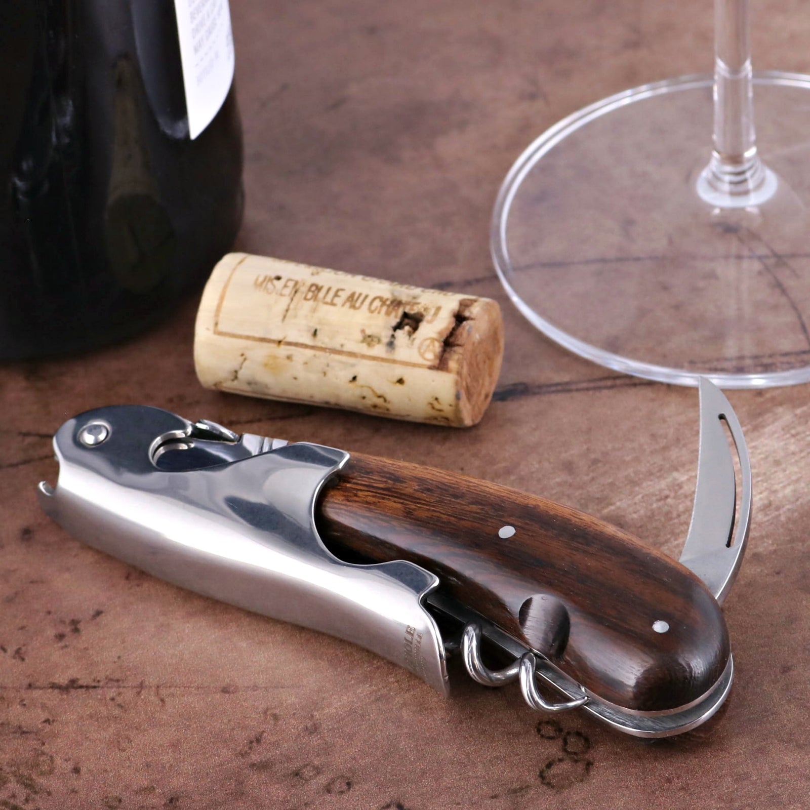What sets this tool apart from all others, including non-Laguiole corkscrews, is its size and ergonomics. At 5.6 oz, it is not a lightweight tool, but it feels surprisingly good in any size hands, male or female. This object of pure luxury is taking over the two-step corkscrew business, and of course, it is 100% Made in France.