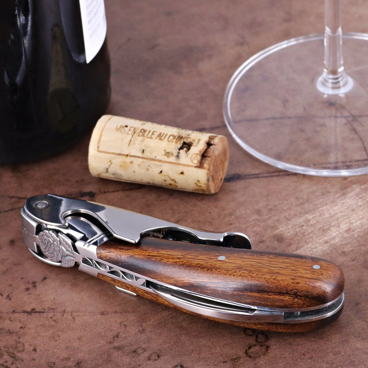 After years of planning, a bold version of the classic Laguiole corkscrew has finally reached the wine industry. This long-awaited super high-end Laguiole waiter's corkscrew features a patented one-piece two-step boot lever, a forged one-piece spring & bee, and a non-serrated foil cutter to facilitate sharpening.