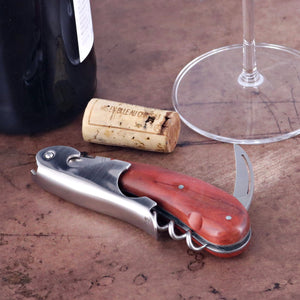 Important Note on Use: Waiter-style corkscrews are designed for use with a secure grip on the bottle neck. Please do not use the tool by clamping the bottle between your knees and pulling the handle. This technique often applies excessive force, which is likely to bend the screw (worm) and will immediately void the product warranty.