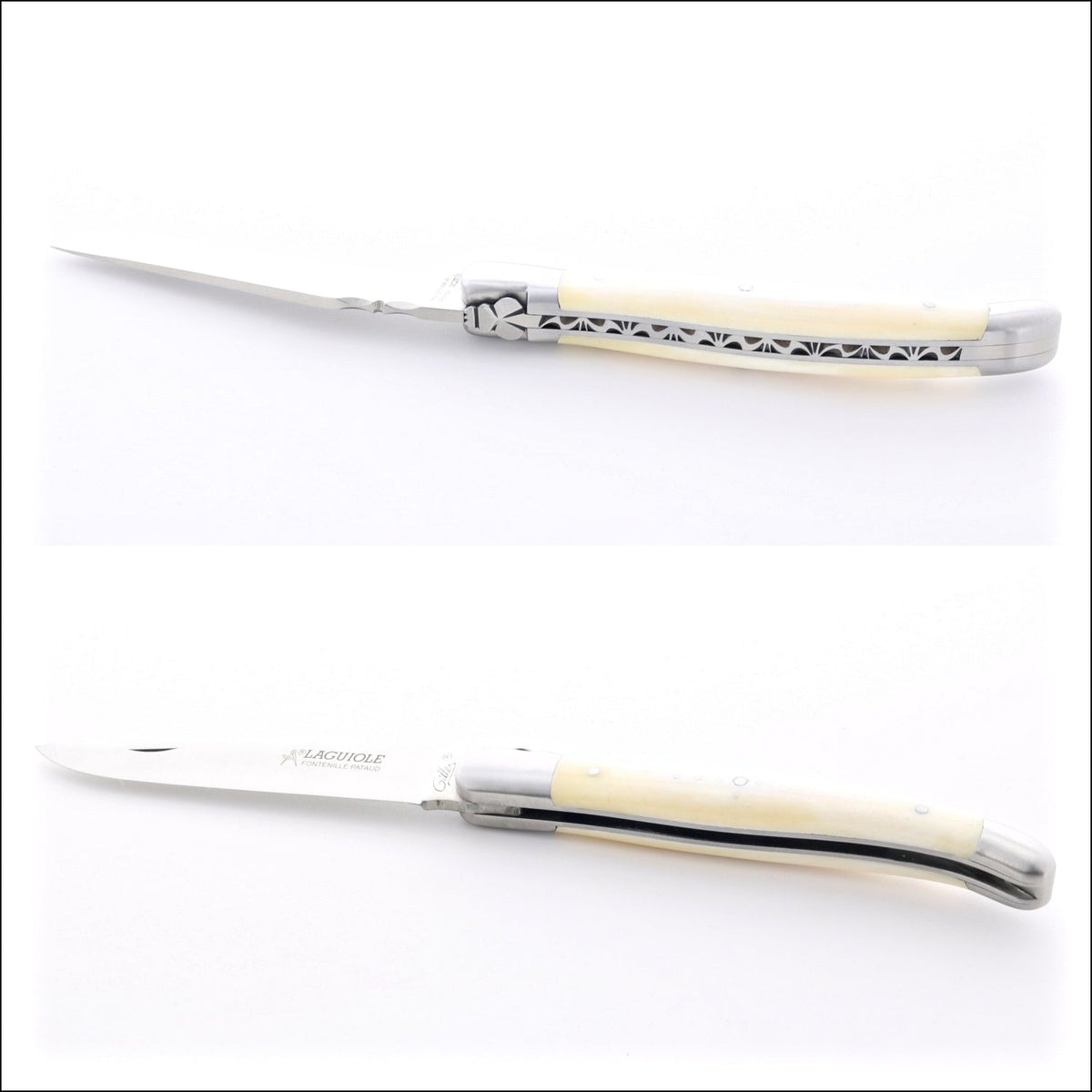 The Laguiole knife originated in Laguiole, France in the early 1820s. Later, its manufacturing was moved to the city of Thiers, France, which was more industrialized. This knife was crafted entirely by hand in Thiers, known as Europe's cutlery capital. The collection of "Gilles®" Fontenille Pataud knives is widely regarded as some of the finest French pocket knives available for purchase.