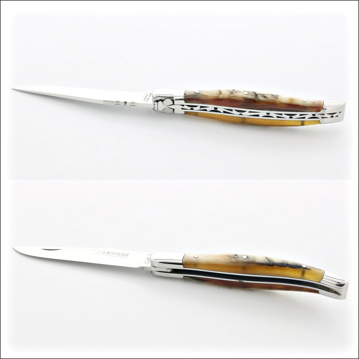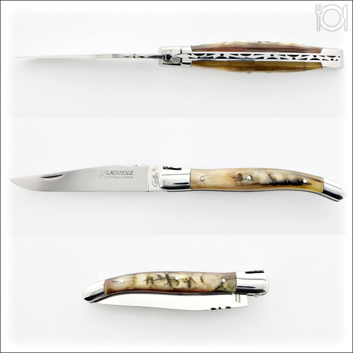 The Laguiole knife originated in Laguiole, France in the early 1820s. Later, its manufacturing was moved to the city of Thiers, France, which was more industrialized. This knife was crafted entirely by hand in Thiers, known as Europe's cutlery capital. The collection of "Gilles®" Fontenille Pataud knives is widely regarded as some of the finest French pocket knives available for purchase.