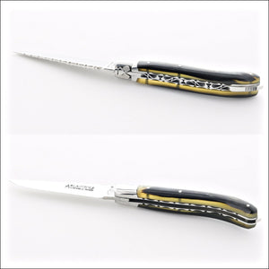 Most inexpensive Laguiole pocket knives found on the market have a soldered bee. The process of adding the bee to the spring by soldering it saves time and money, this is why the cost of soldered bee knives can be substantially less. The original Laguiole knives had forged bees.