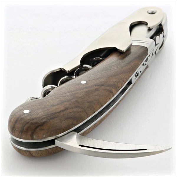This long-awaited high-end Laguiole waiter's corkscrewfeatures a patented one-piece two-step boot lever; a forged one-piece spring & bee and a non-serrated foil cutter to facilitate sharpening.